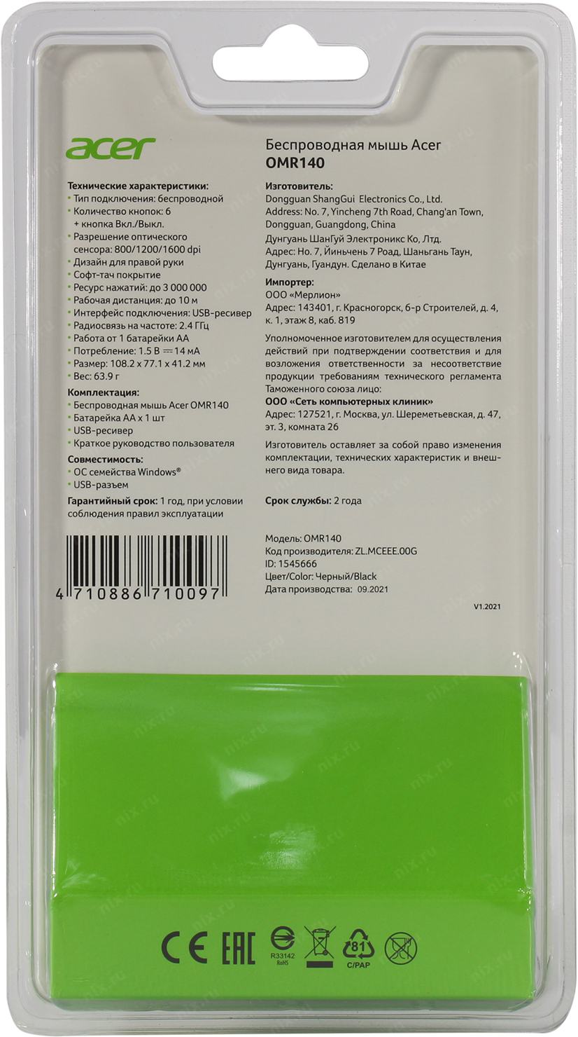 Acer OMR140 [ZL.MCEEE.00G] оптическая, беспроводная, USB, черный [zl.mceee.00g]