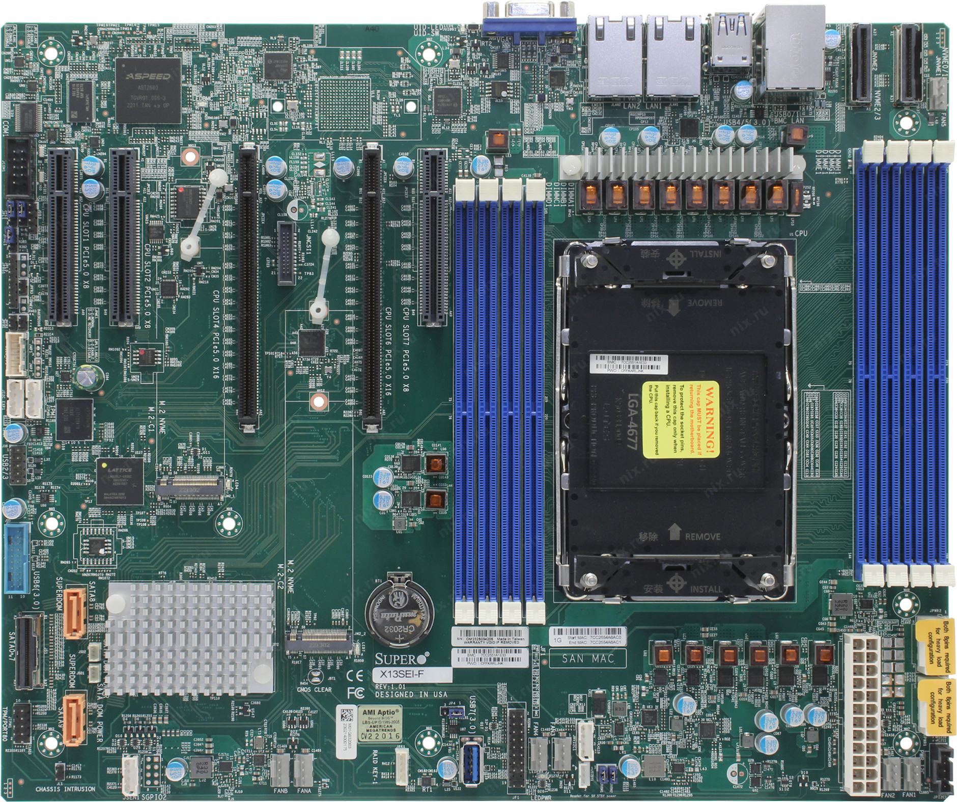 Поддерживается IPMI (Intelligent Platform Management Interface), KVM-over-LAN. Встроенная плата аппаратного управления/мониторинга Aspeed AST2600 с поддержкой IPMI (Intelligent Platform Management Interface) v.2.0 и KVM-over-LAN. Выделенный порт управления