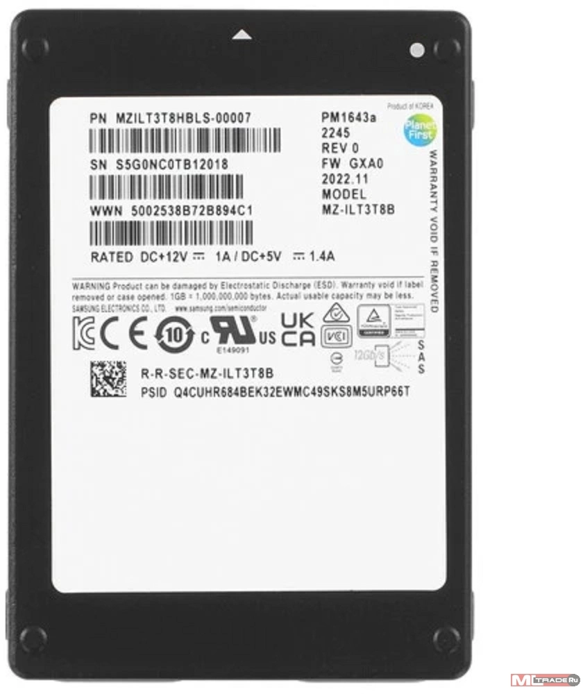 Накопитель Samsung SSD 3840Gb PM1643a 2.5" SAS MZILT3T8HBLS-00007