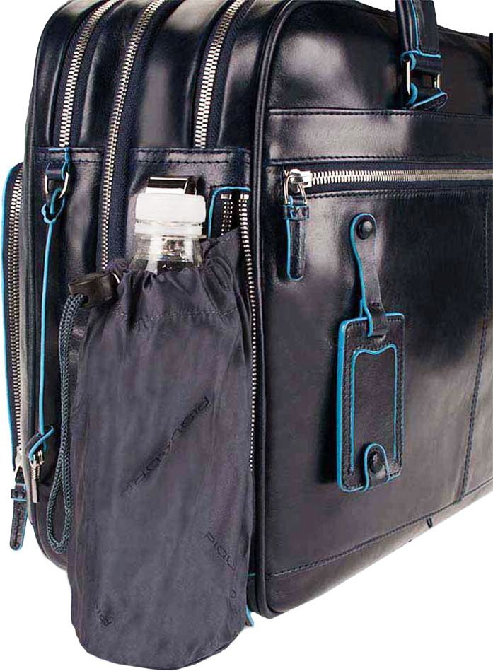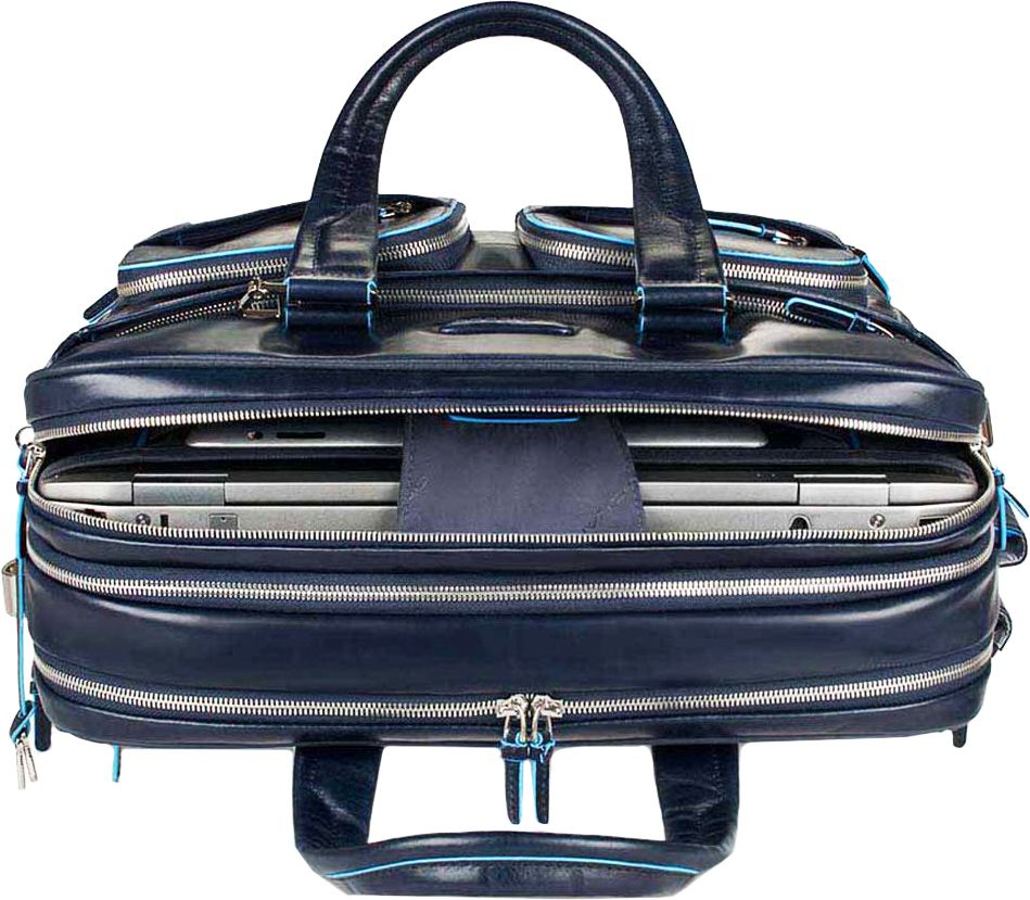 Натуральная кожа. Оторочка по канту. Ремень съемный. Два основных отделения на молнии. Внутри отделения для ручек, кредитных карт и пр., отделение для ноутбука (15 дюймов) с фиксацией, отделение для IPad, Спереди карманы на молнии. Возможно увеличение внутреннего объема (молния по периметру)