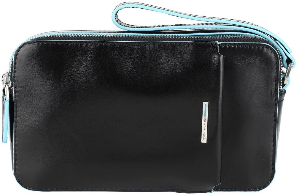 Сумка с двумя ручками из натуральной телячей кожи с голубой окантовкой. Съемный плечевой ремень. Одно основное отделение, отделения для ноутбука (13" ) и iPad / iPad Air. Органайзер, карманы для мелких вещей и зонта. Система крепления к ручке багажной сумки. Внешний большой карман на молнии.