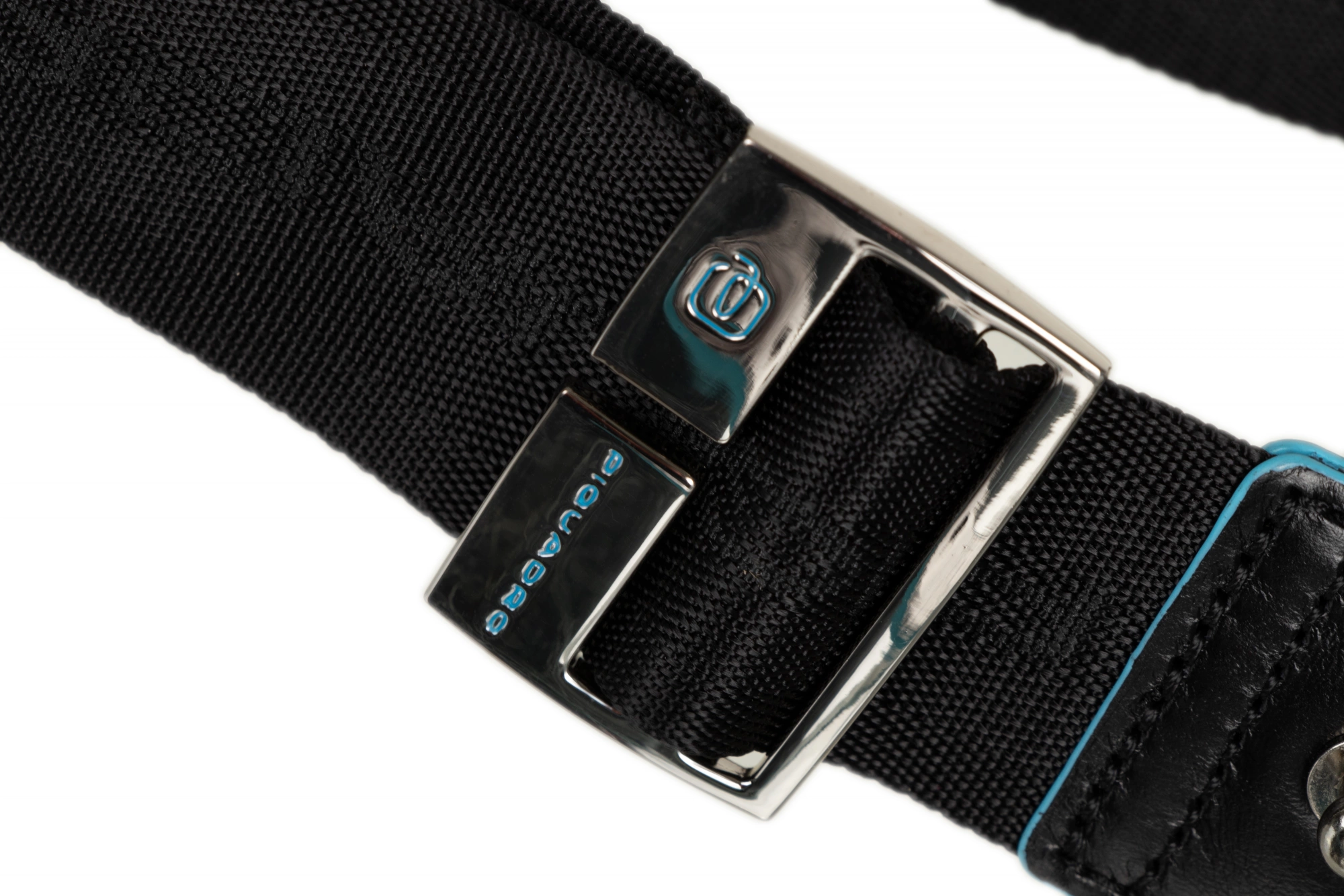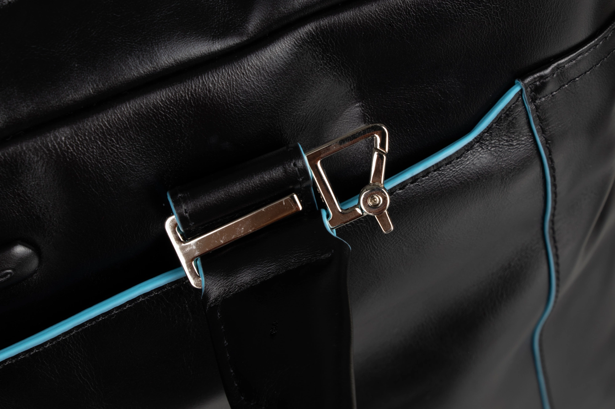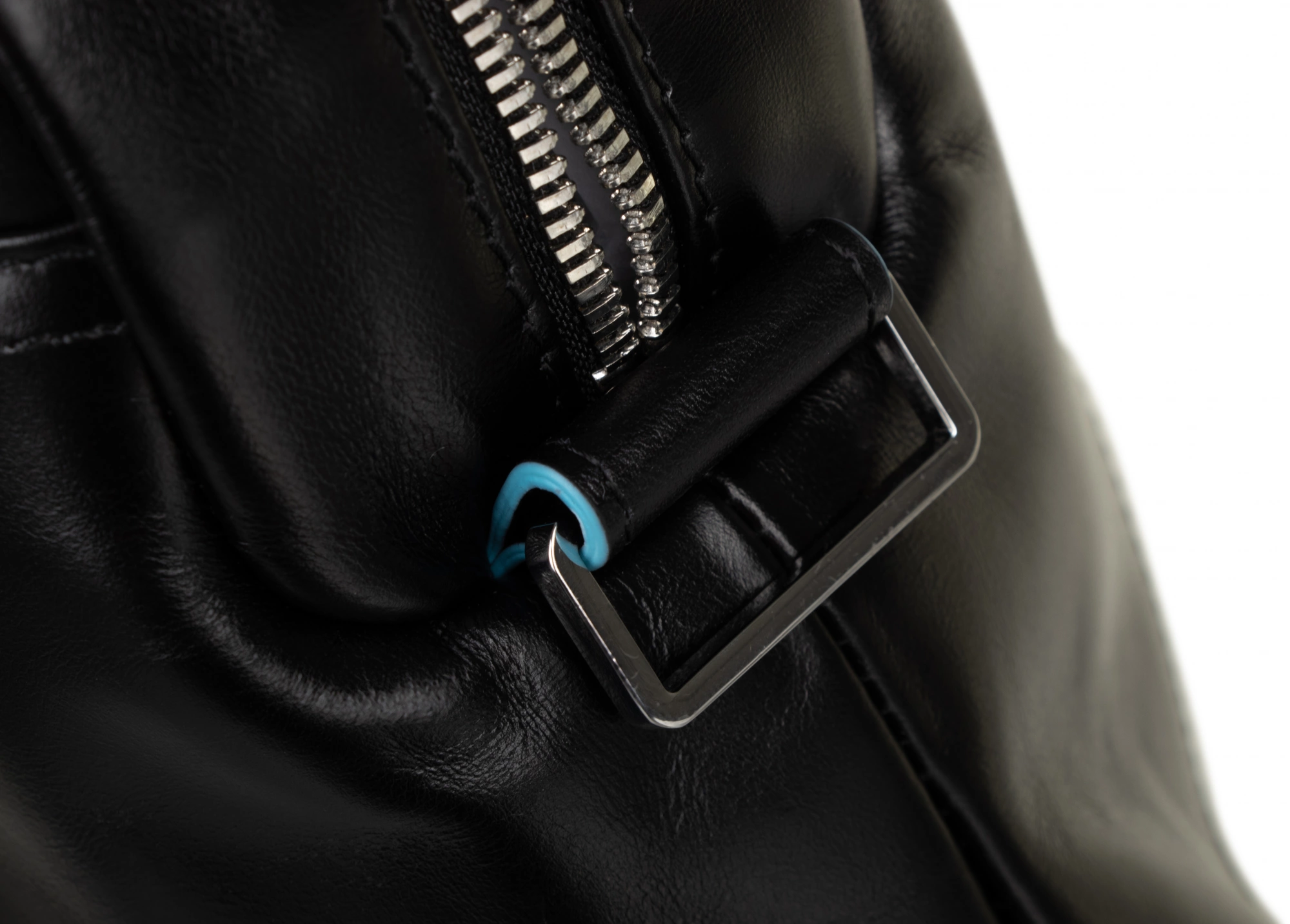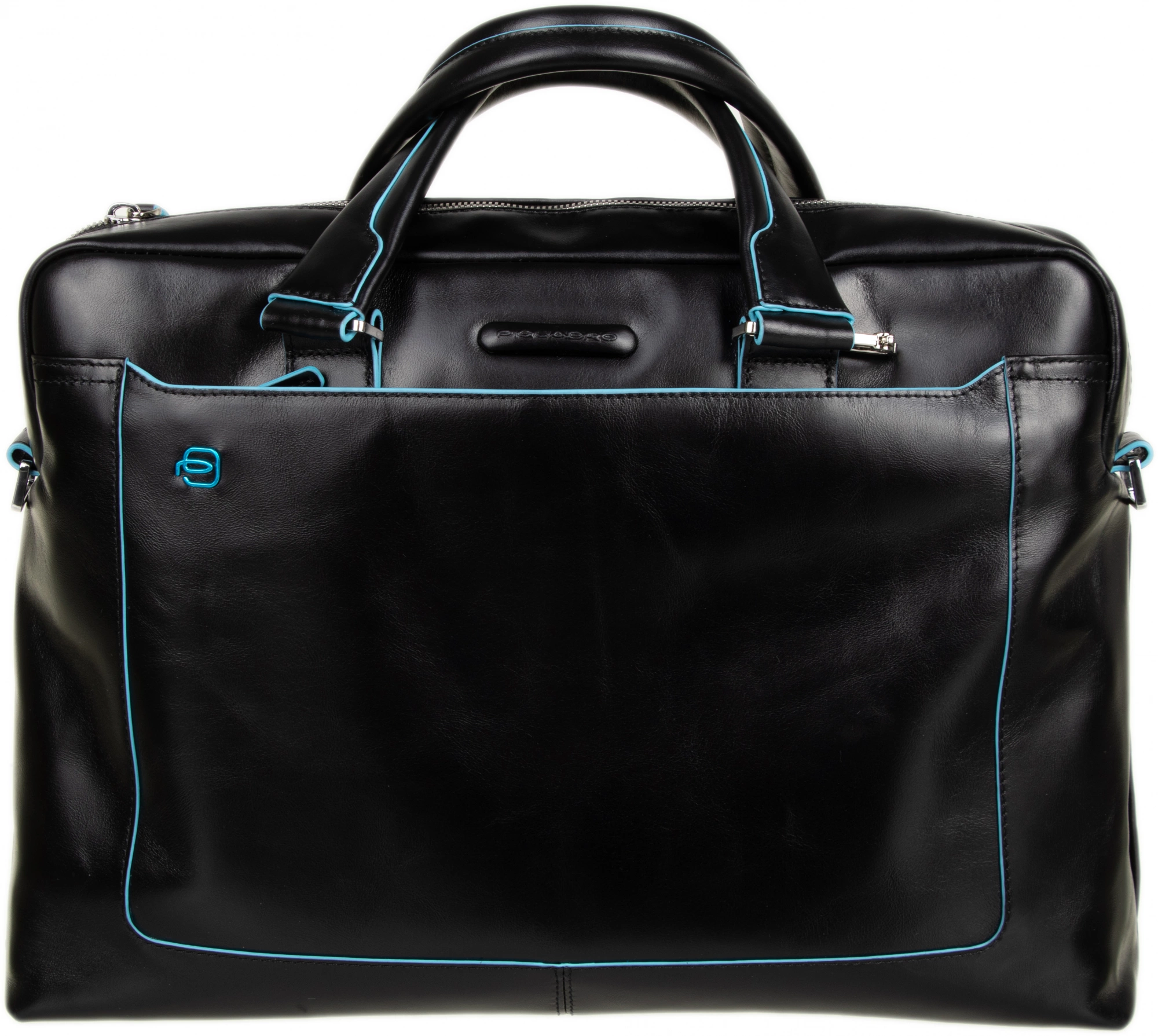 Сумка с двумя ручками из натуральной кожи с голубой окантовкой. Съемный плечевой ремень. Одно основное отделение, отделения для ноутбука (13" ) и iPad / iPad Air. Органайзер, карманы для мелких вещей и зонта. Система крепления к ручке багажной сумки. Внешний большой карман на молнии
