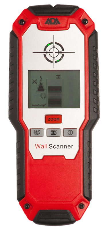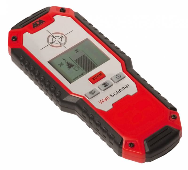 Детектор металла, проводки и дерева ADA Wall Scanner 80 детектор для обнаружения в стенах, полах и потолках металла цветного и черного, проводов под напряжением и деревянных конструкций посредством электрического сигнала. Глубина обнаружения дерева - 20 мм, провода под напряжением - 50 мм.