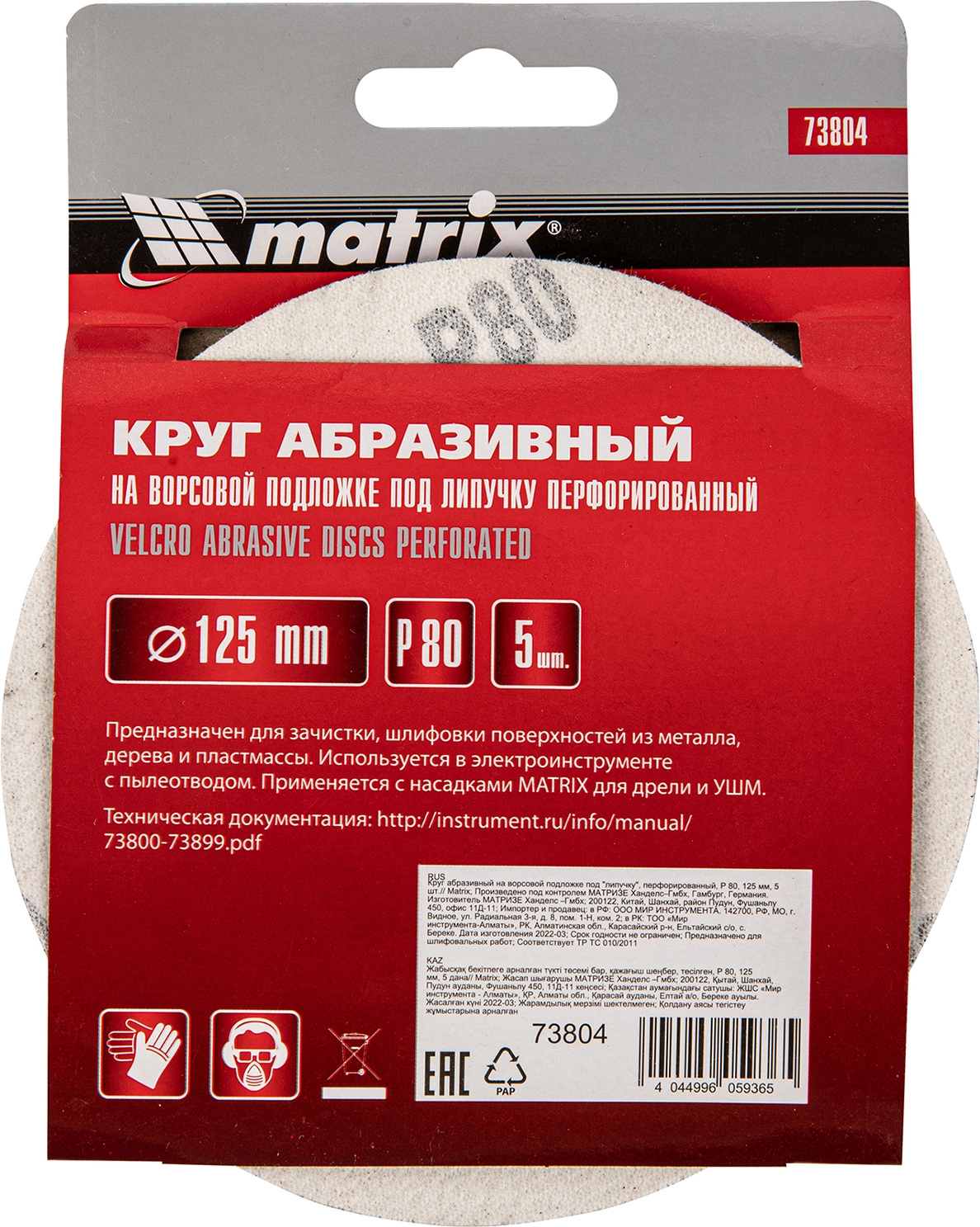 Диск абразивный Matrix 73804 d=125мм (шлифовальные машины/ дрели) (упак.:5шт)