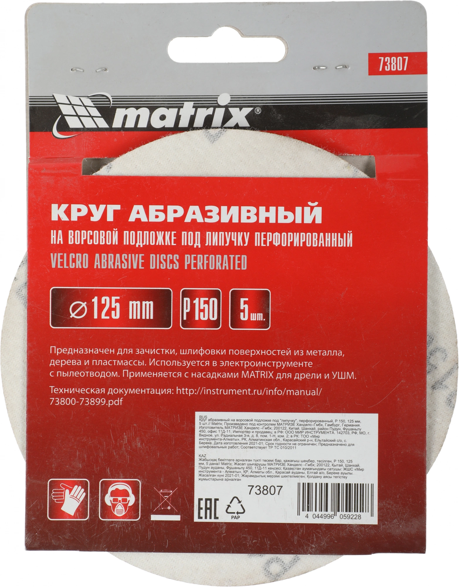 Диск абразивный Matrix 73807 d=125мм (шлифовальные машины/ дрели) (упак.:5шт)
