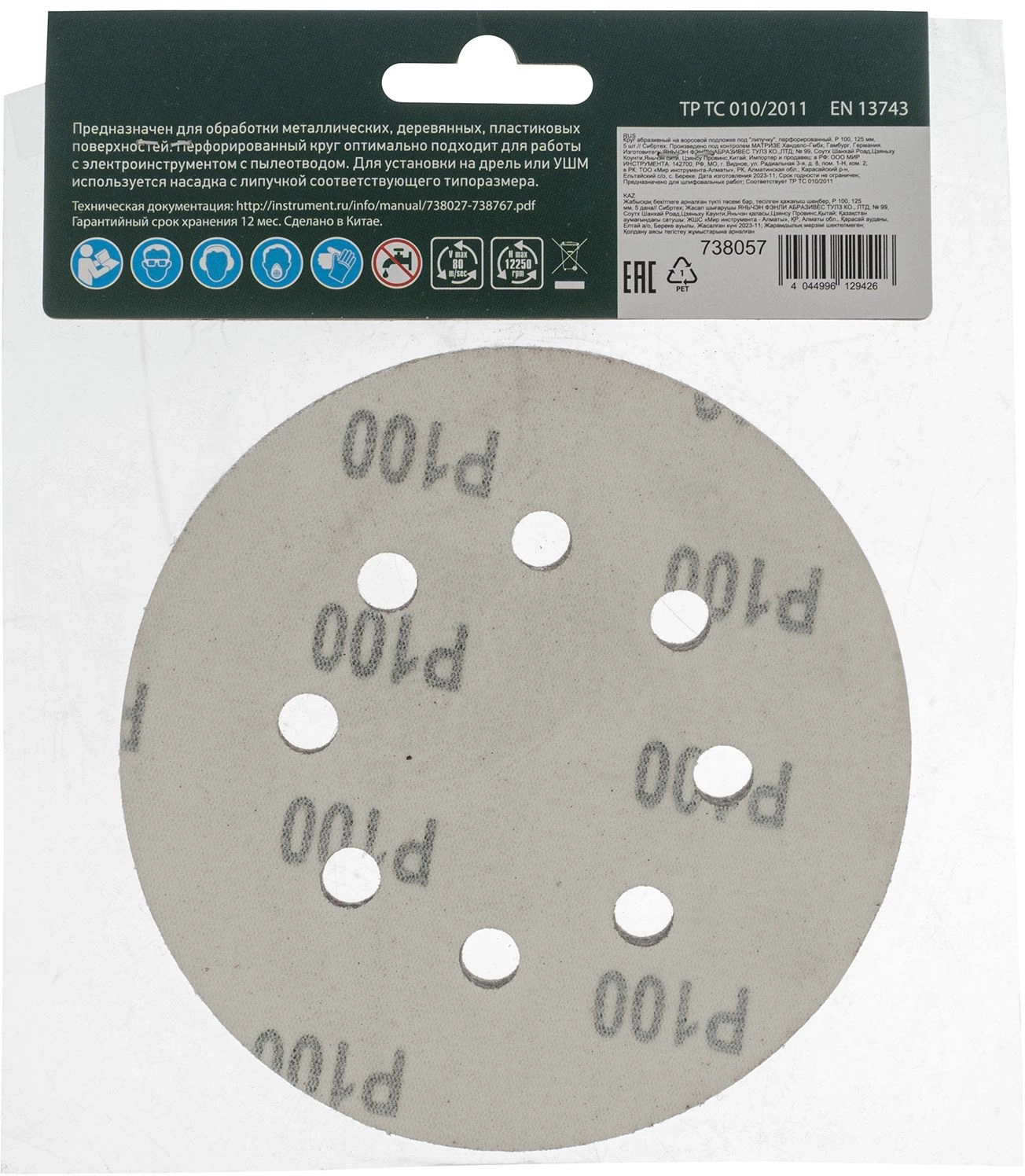 Абразивный круг на ворсовой подложке под «липучку» Сибртех Р100 арт. 738057 используется для промежуточного шлифования металла, дерева, пластика и других поверхностей.