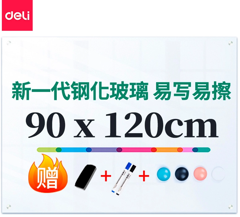 Доска стеклянная Deli 50045 белый 90x120см стекло 4 магнита/2 маркера/стиратель