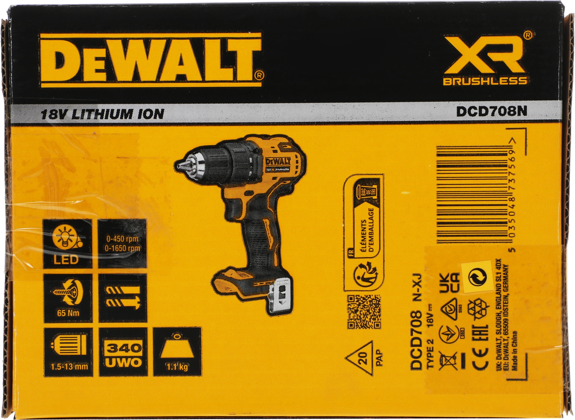 Дрель-шуруповерт DeWalt DCD708N-XJ Без АКБ и ЗУ аккум. патрон:быстрозажимной (DCD708N-XJ)