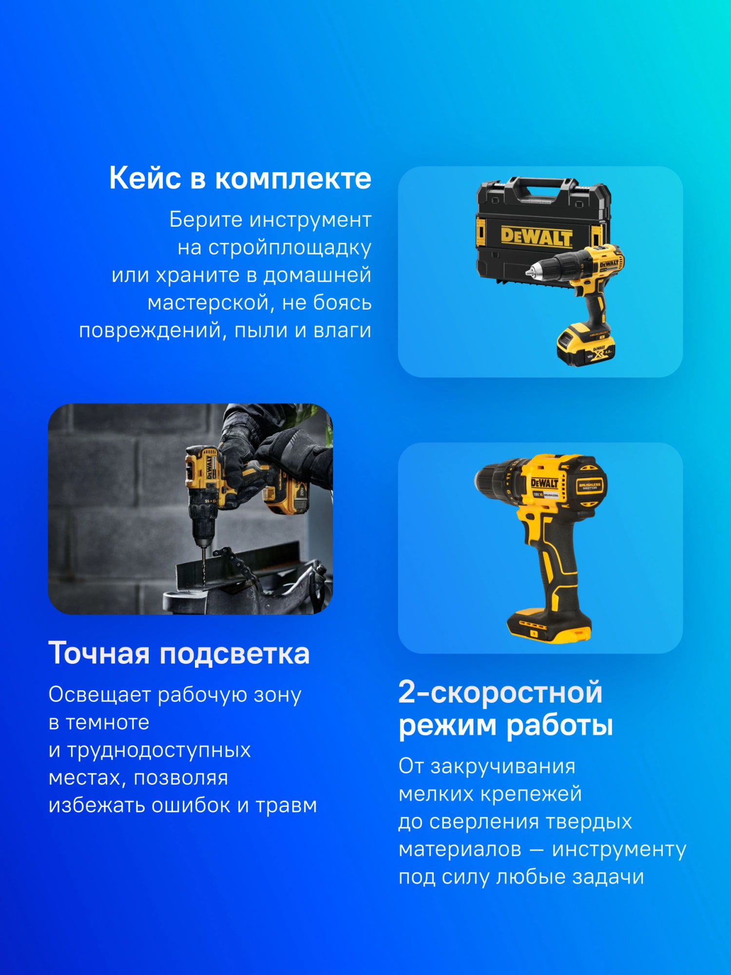 Функция реверса, обрезиненная рукоятка для комфортной работы и надежного удержания инструмента.