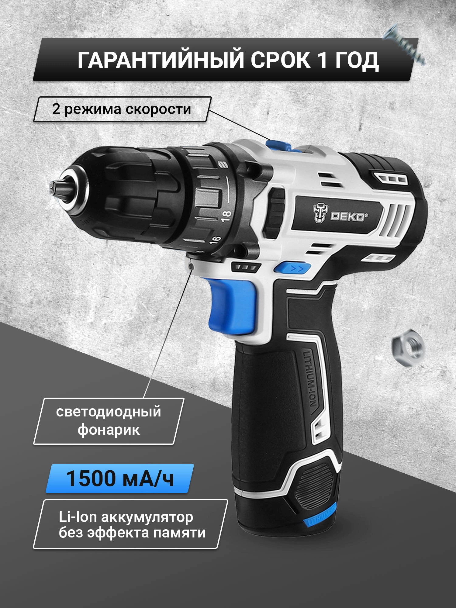 Дрель-шуруповерт Deko GCD12DU3 SNOW WHITE SET1 аккум. патрон:быстрозажимной (063-4170)