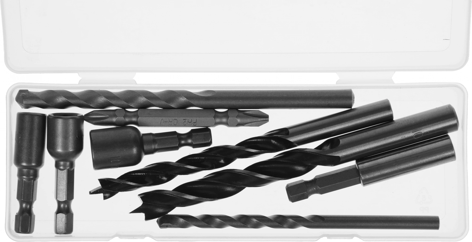 Дрель ударная аккумуляторная, сверло, бита двусторонняя, держатель для бит, бита с торцевой головкой, дополнительная рукоятка, металлическая скоба, кейс, аккумулятор, зарядное устройство, руководство по эксплуатации.