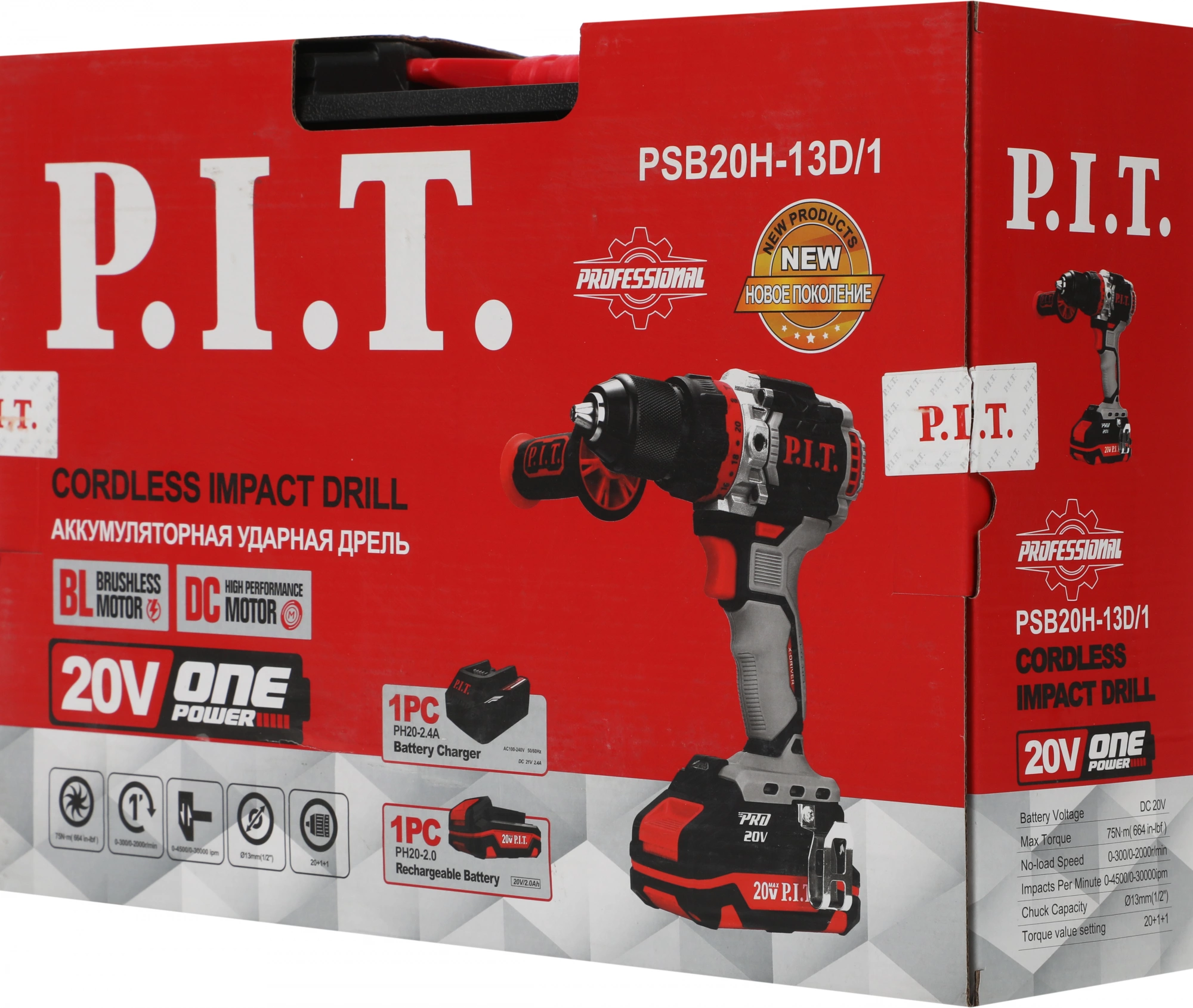 Дрель-шуруповерт P.I.T. PSB20H-13D/ 1 аккум. патрон:быстрозажимной (кейс в комплекте)