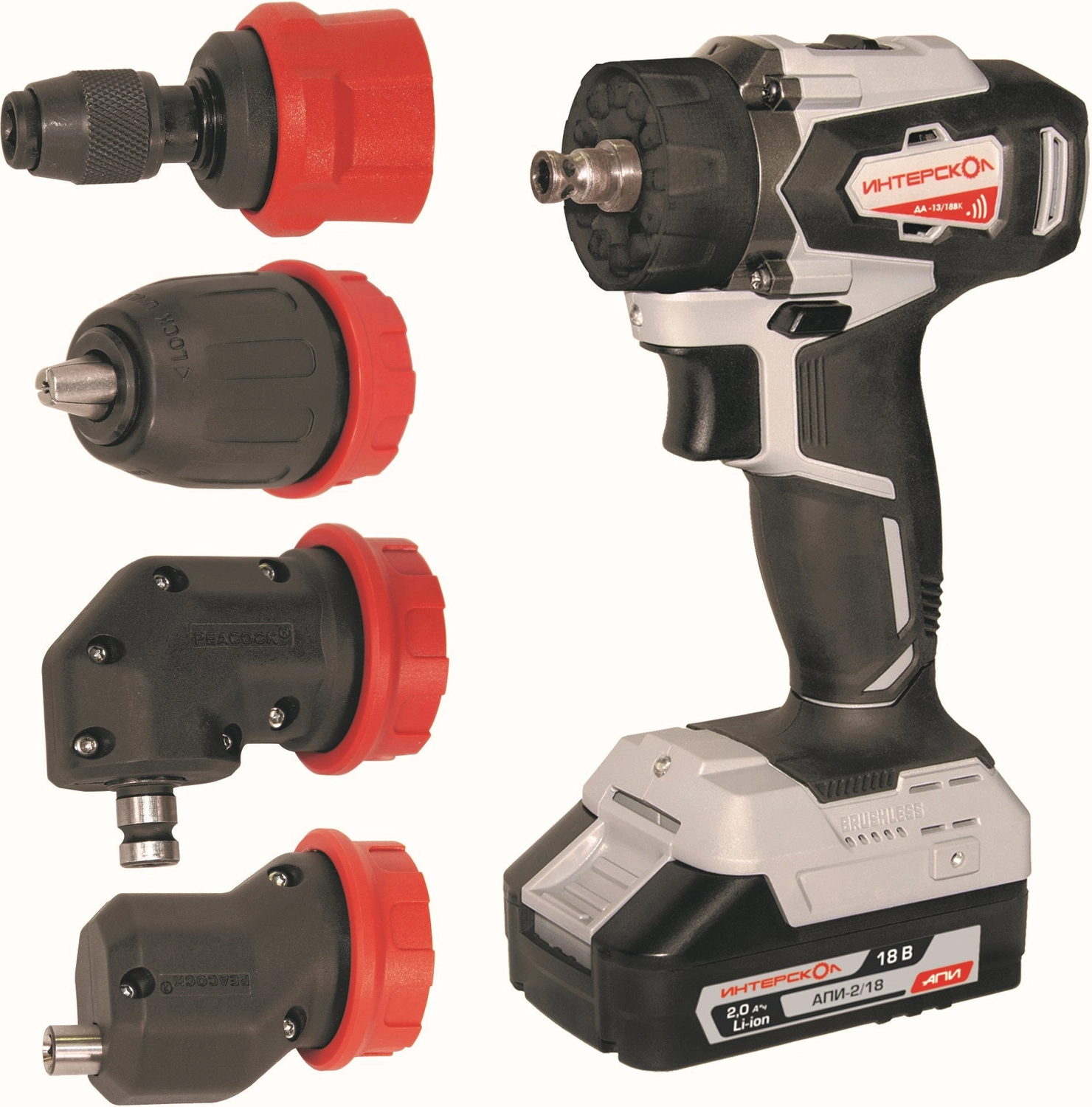 Машина ручная сверлильная аккумуляторная, патрон сверлильный БЗП, редуктор эксцентриковый насадка, редуктор угловой насадка, патрон для специальных сверл насадка, инструкция по безопасности и руководство по эксплуатации, гарантийный талон, батарея аккумуляторная, 2, 0 А.
