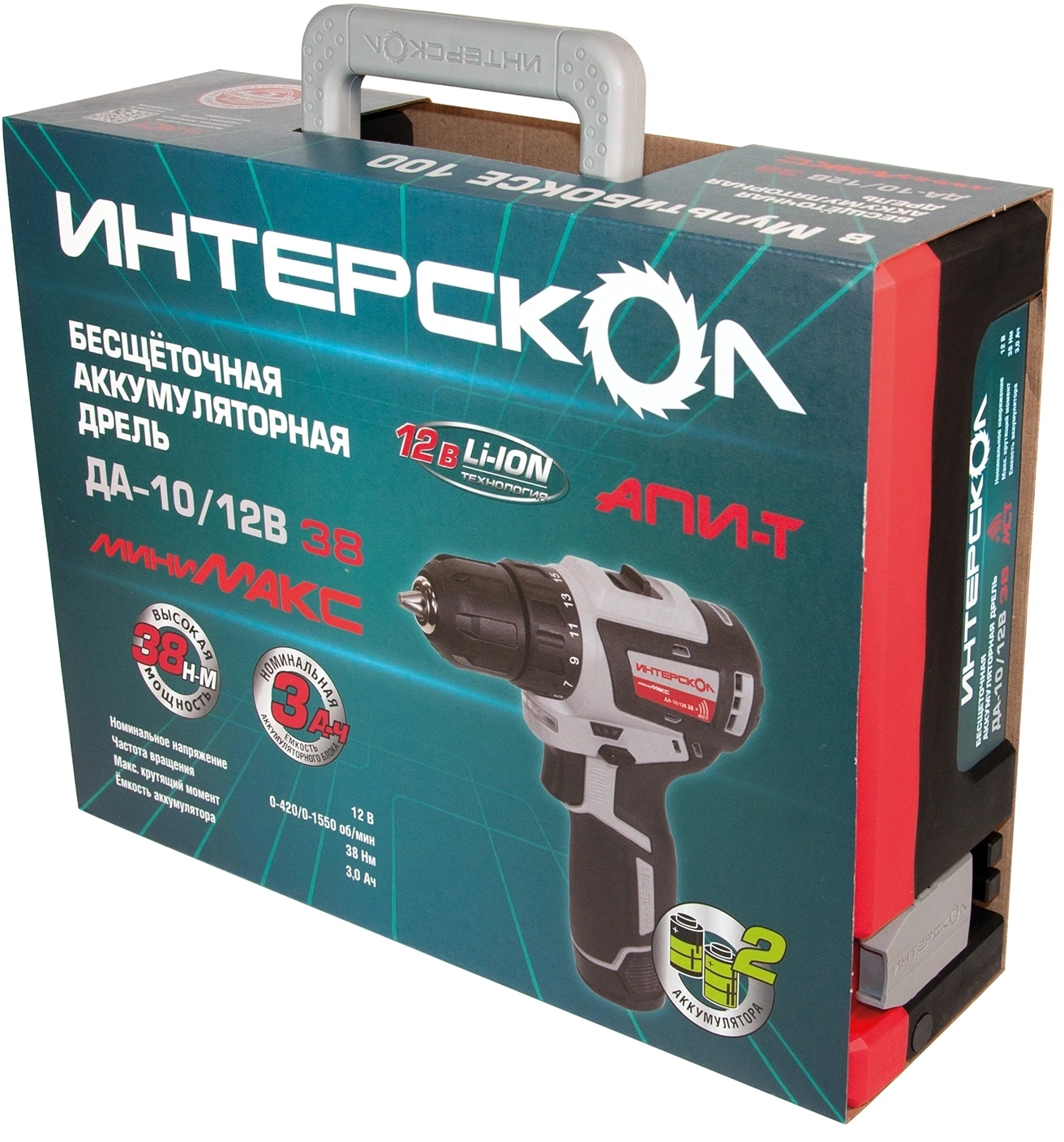 Дрель-шуруповерт Интерскол ДА-10/ 12В 38 аккум. патрон:быстрозажимной (кейс в комплекте) (757.3.2.46)