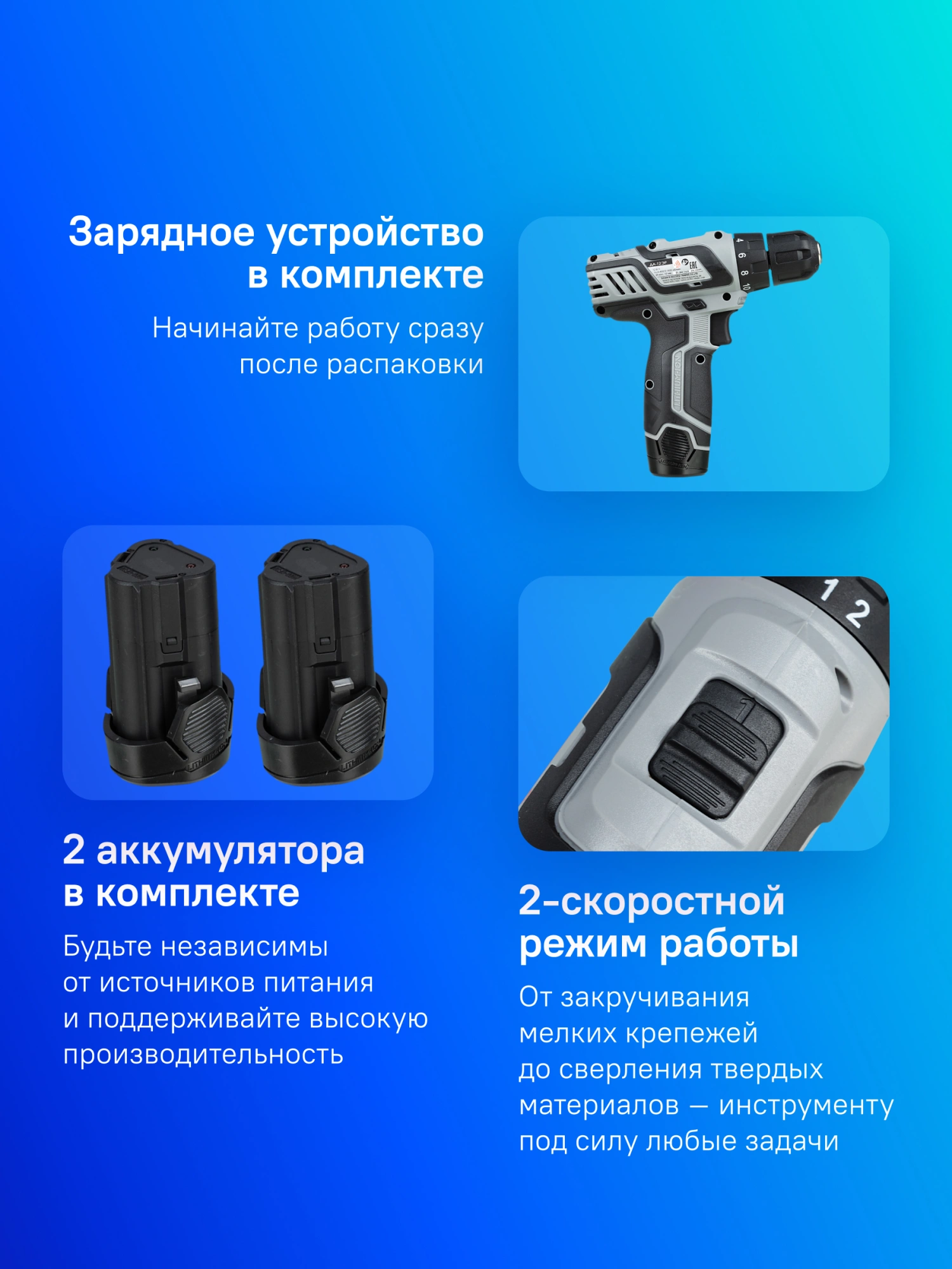 Дрель-шуруповерт; Батарея аккумуляторная (2 шт.) ; Устройство зарядное;