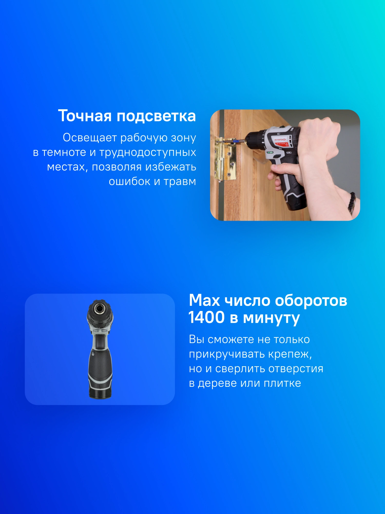 Функция реверс; Контроллер с функцией отключения двигателя при перегрузке; Индикатор уровня остаточного заряда