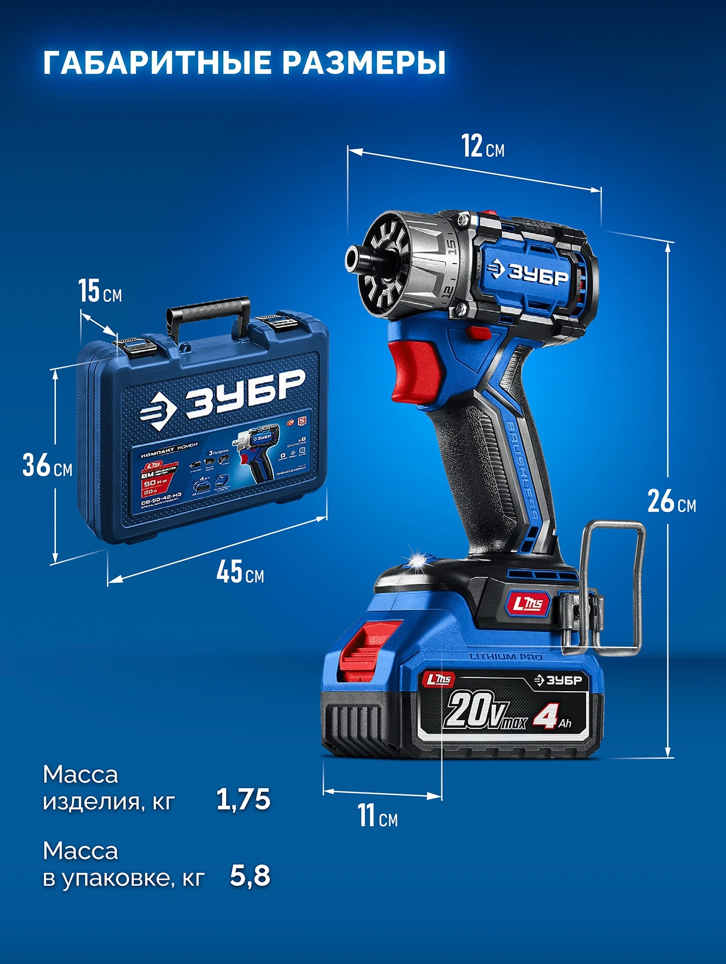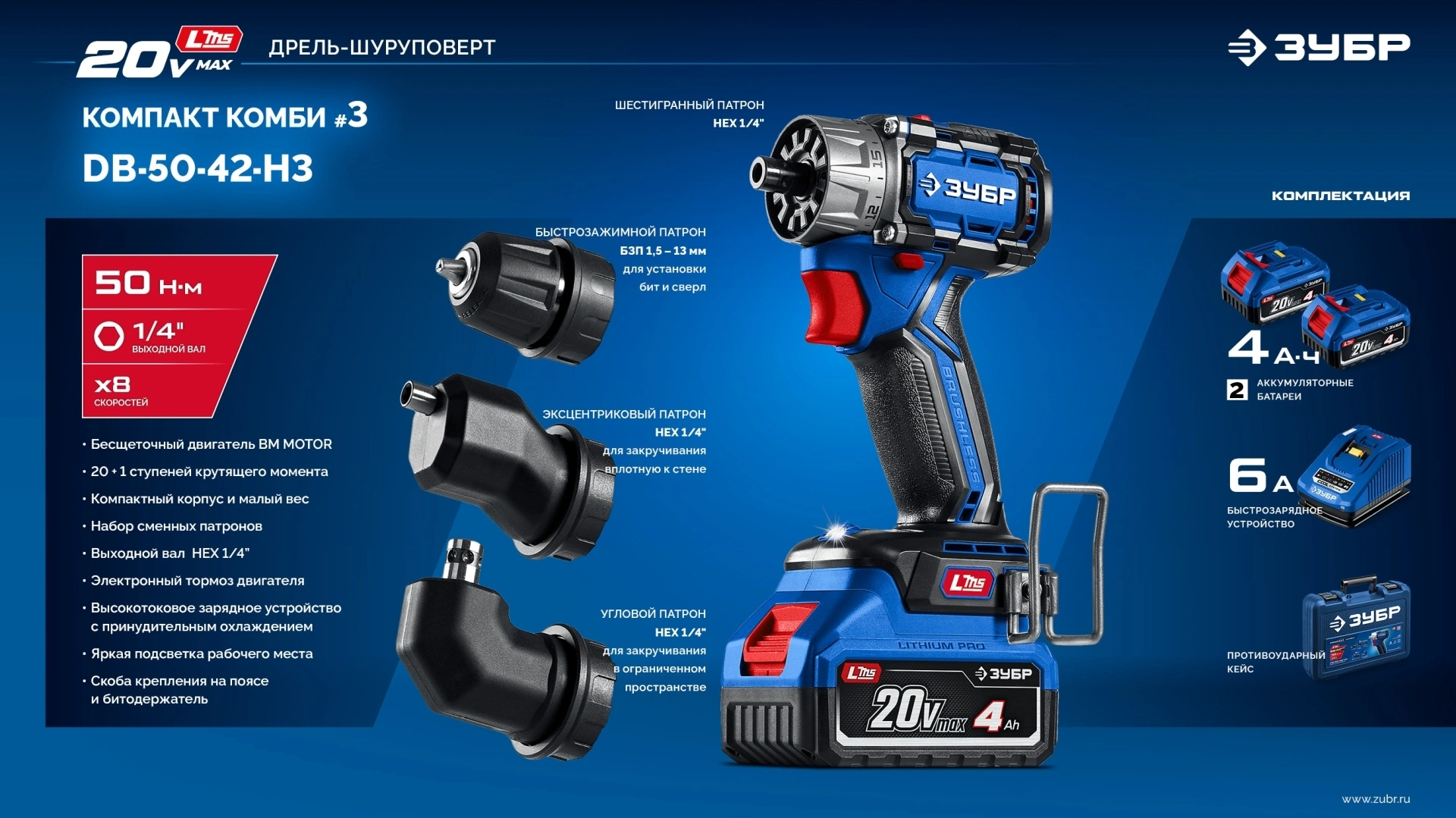 Дрель-шуруповерт Зубр DB-50-42-H3 40Вт аккум. патрон:быстрозажимной (кейс в комплекте)
