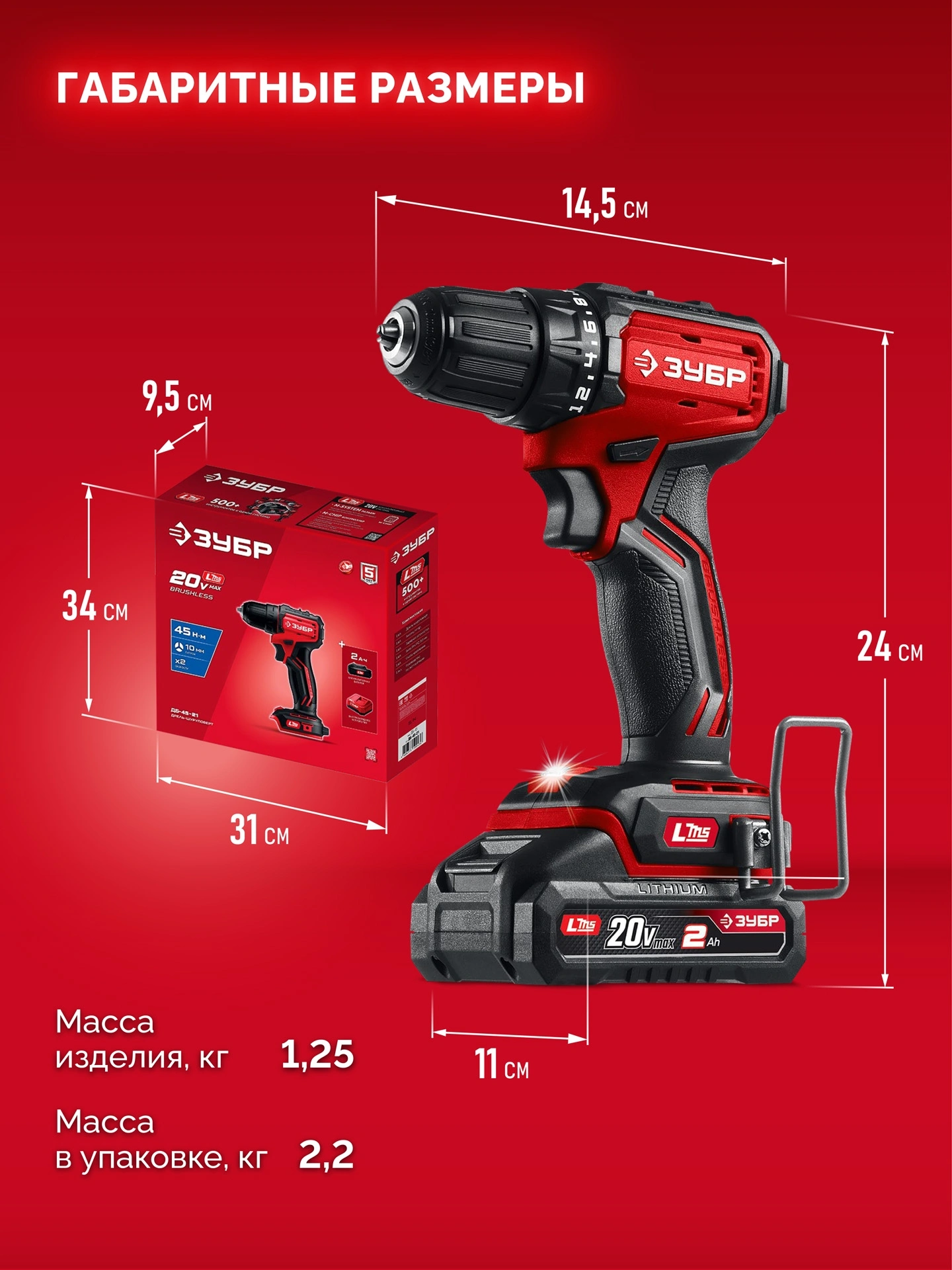Дрель-шуруповерт, аккумулятор, зарядное устройство, бита, скоба крепления, руководство по эксплуатации.