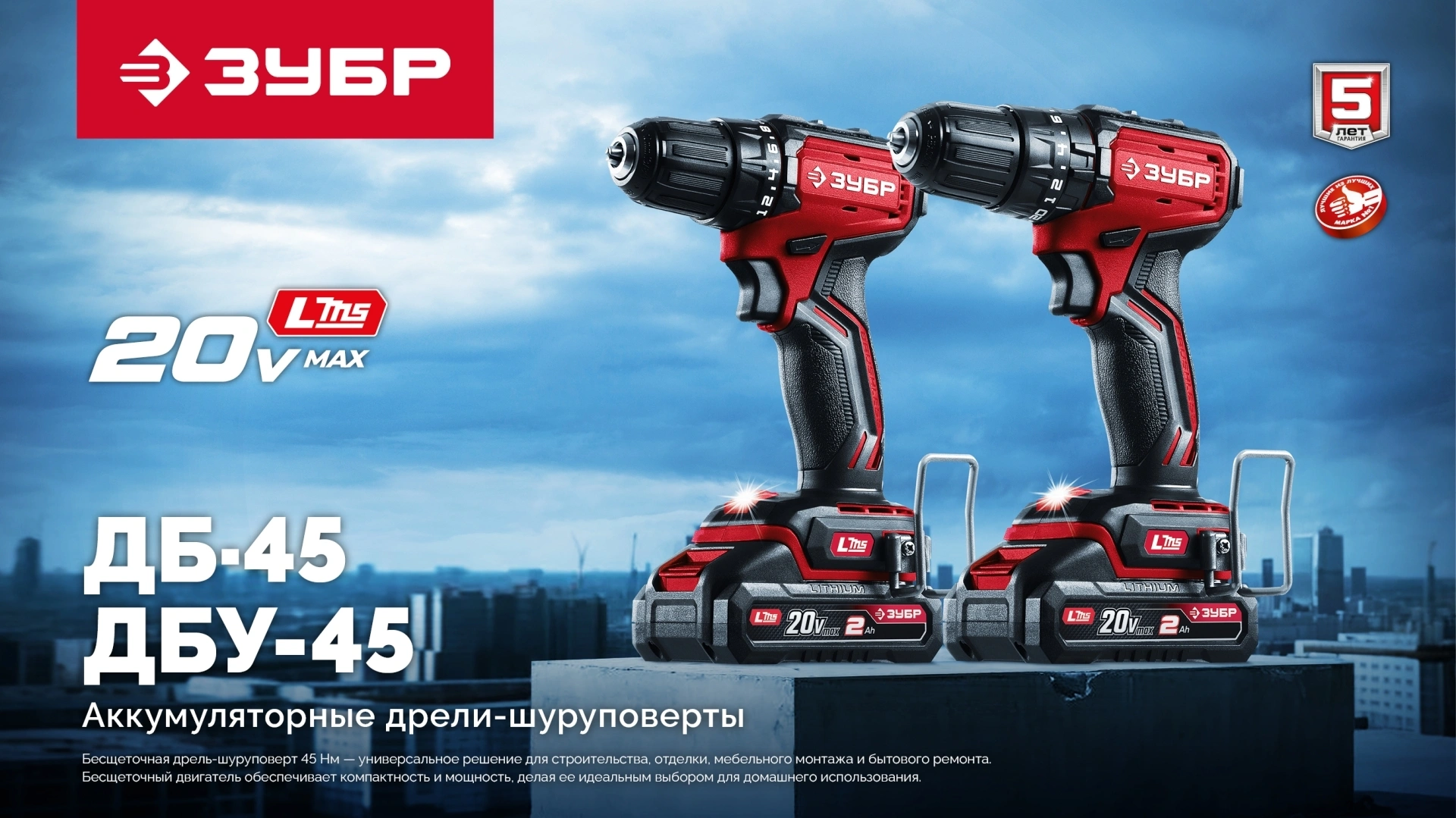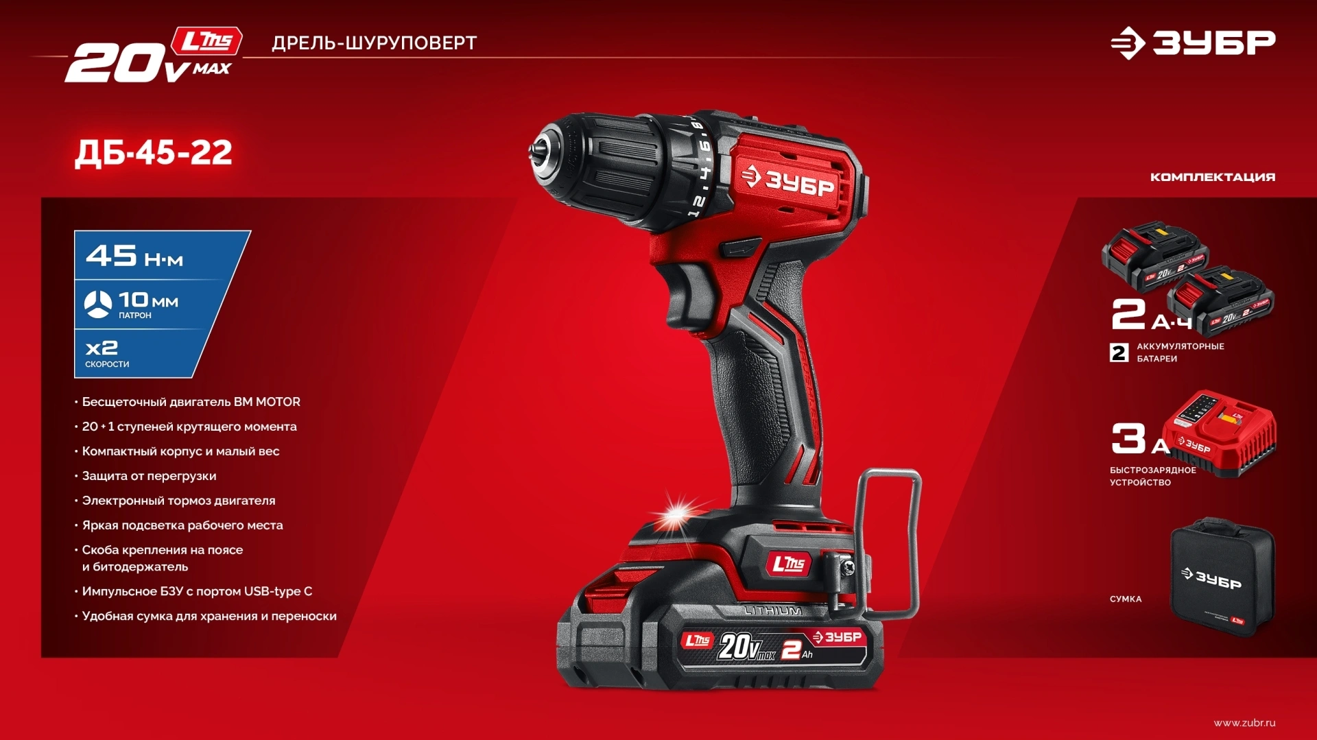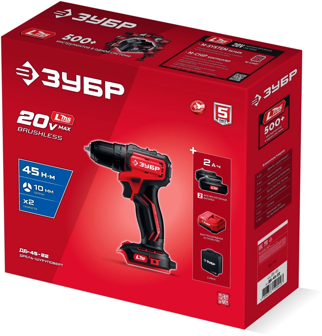 Дрель-шуруповерт Зубр ДБ-45-22 40Вт аккум. патрон:быстрозажимной