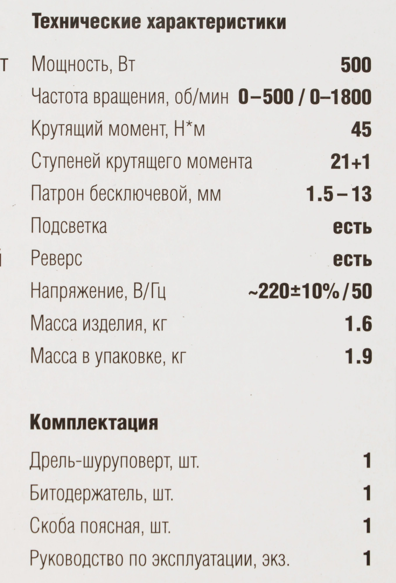 Дрель-шуруповерт Зубр ДШ-М3-500-2 500Вт патрон:быстрозажимной