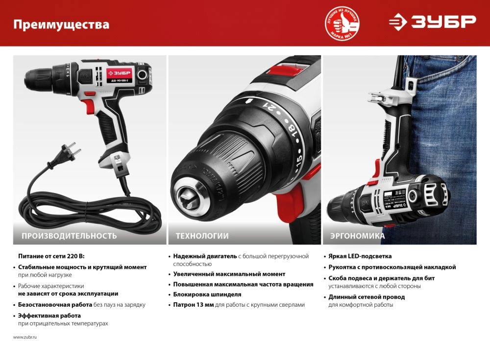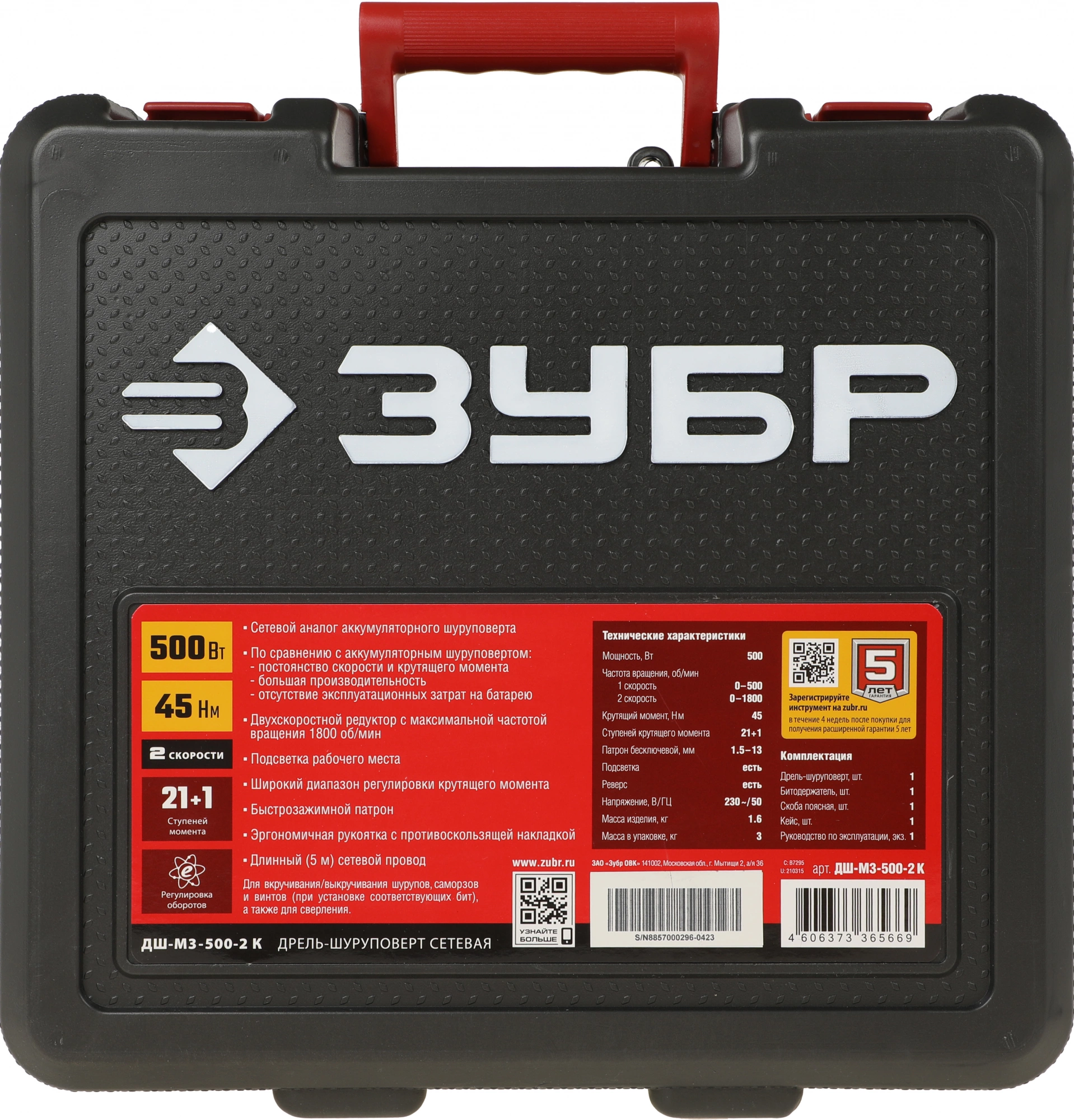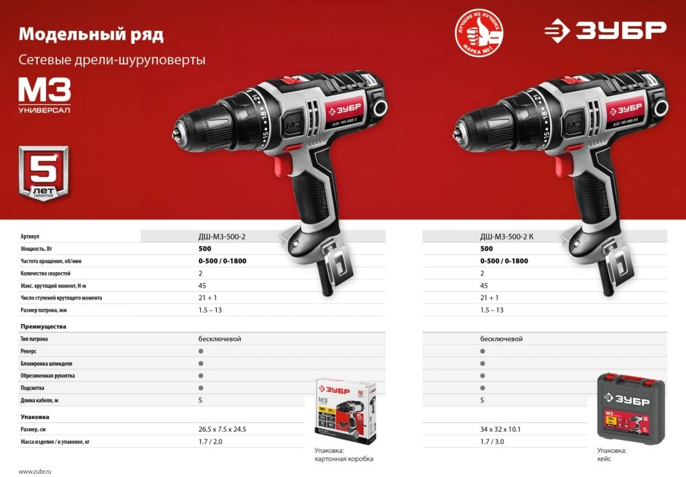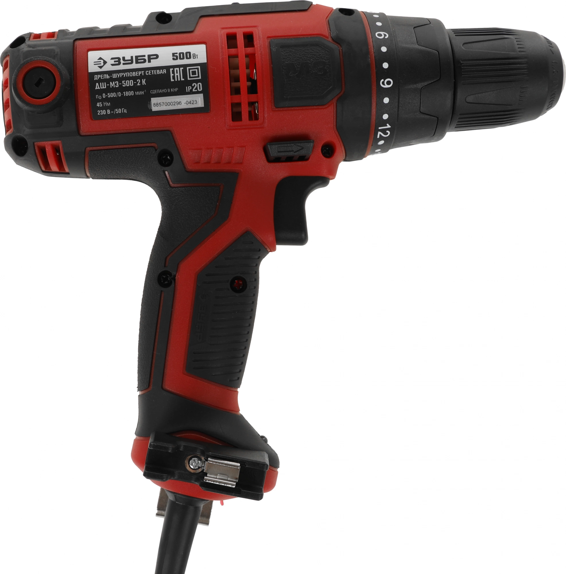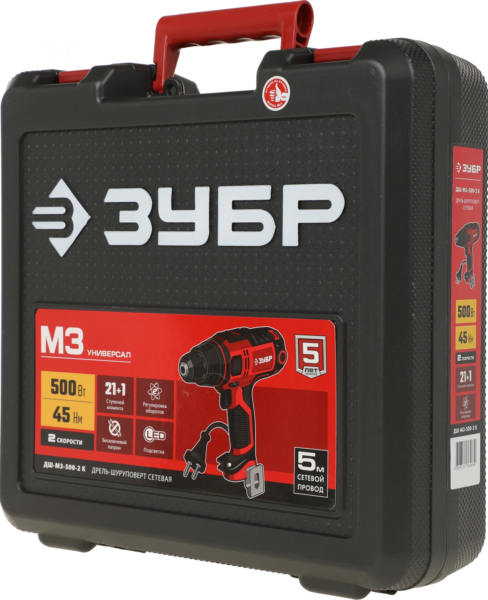Дрель-шуруповерт Зубр ДШ-М3-500-2 К 500Вт патрон:быстрозажимной (кейс в комплекте)