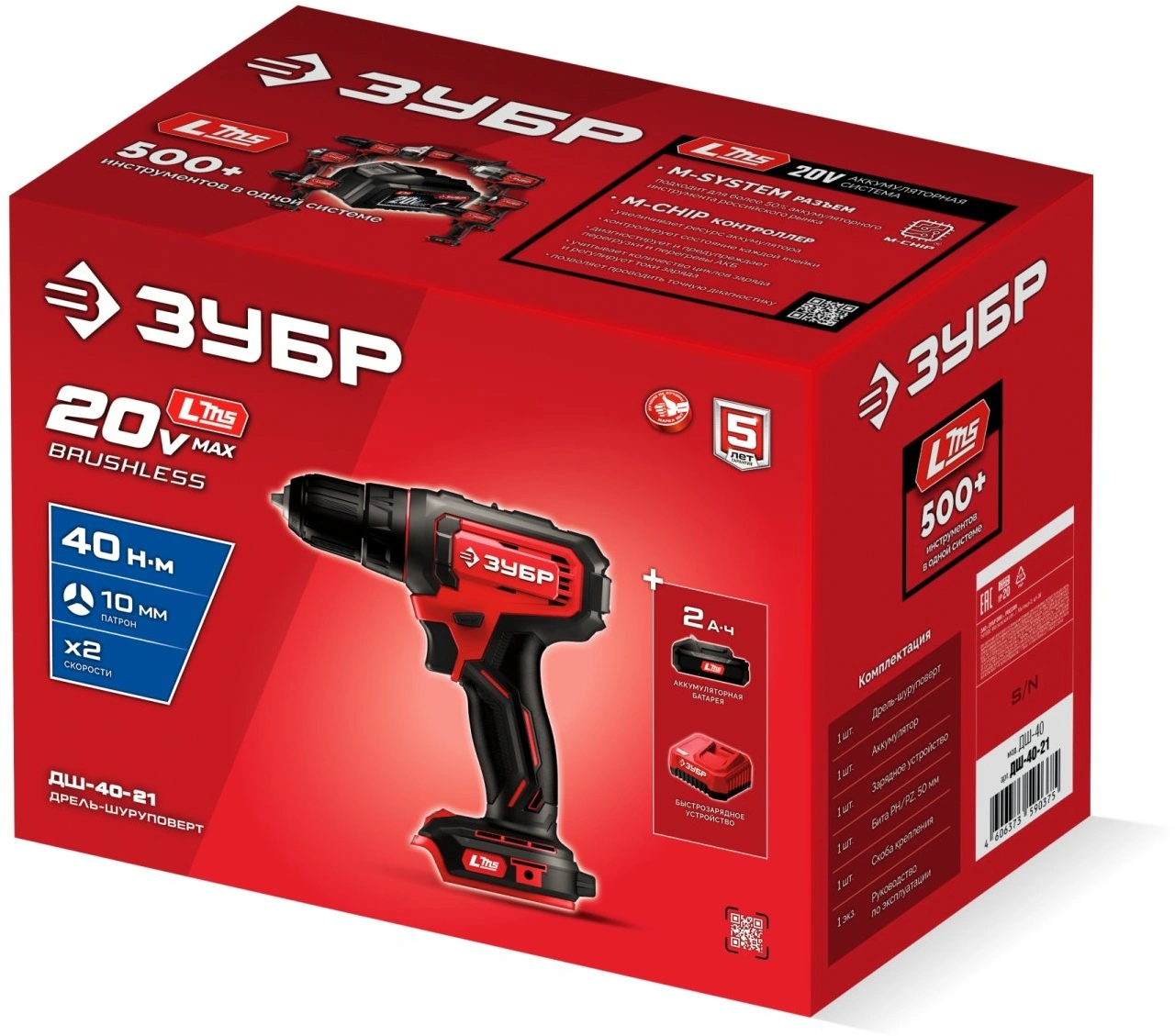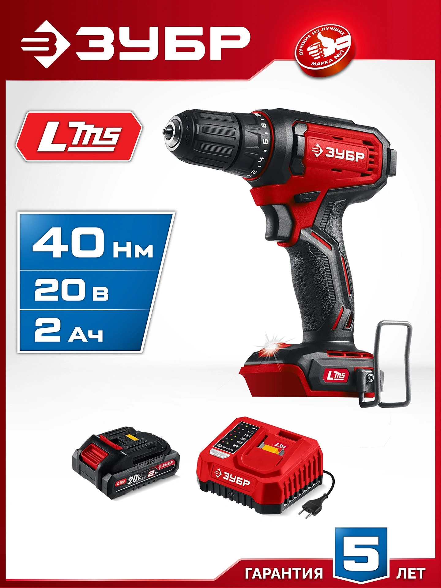 Дрель-шуруповерт, аккумулятор, зарядное устройство, бита, скоба крепления, руководство по эксплуатации.
