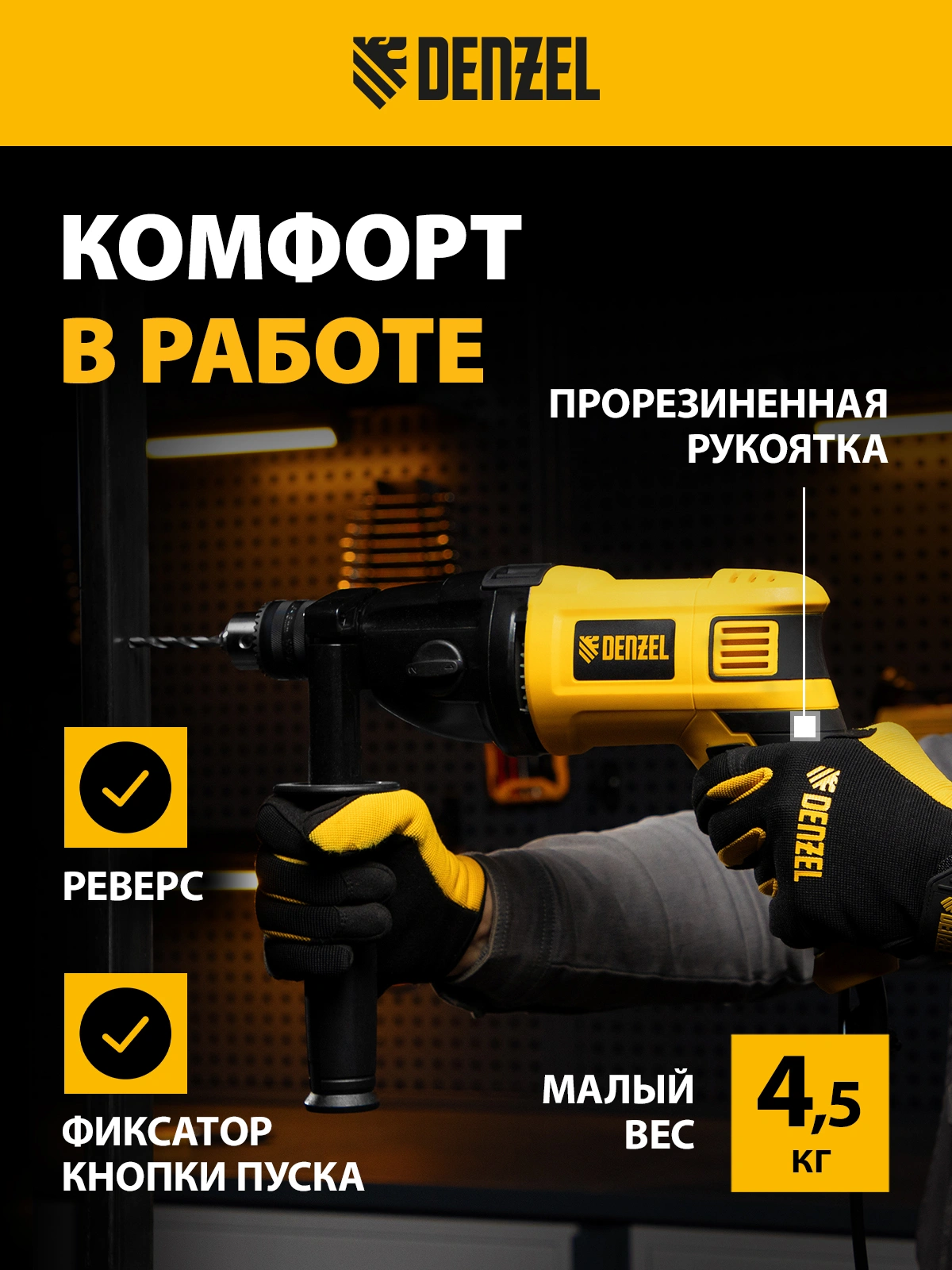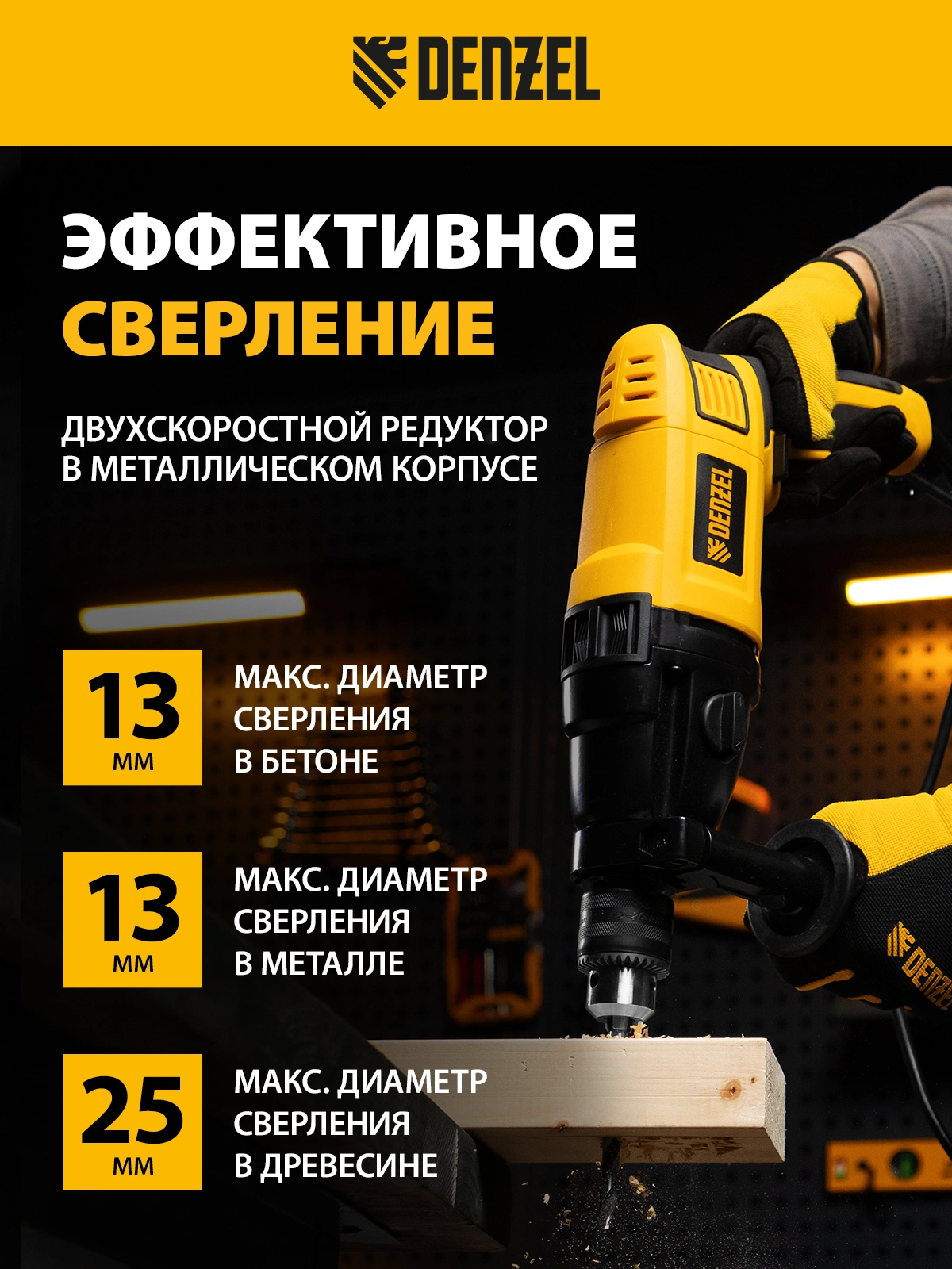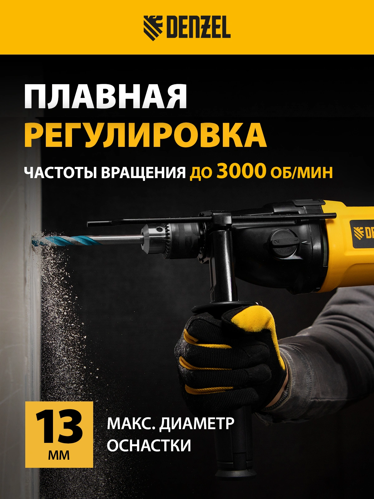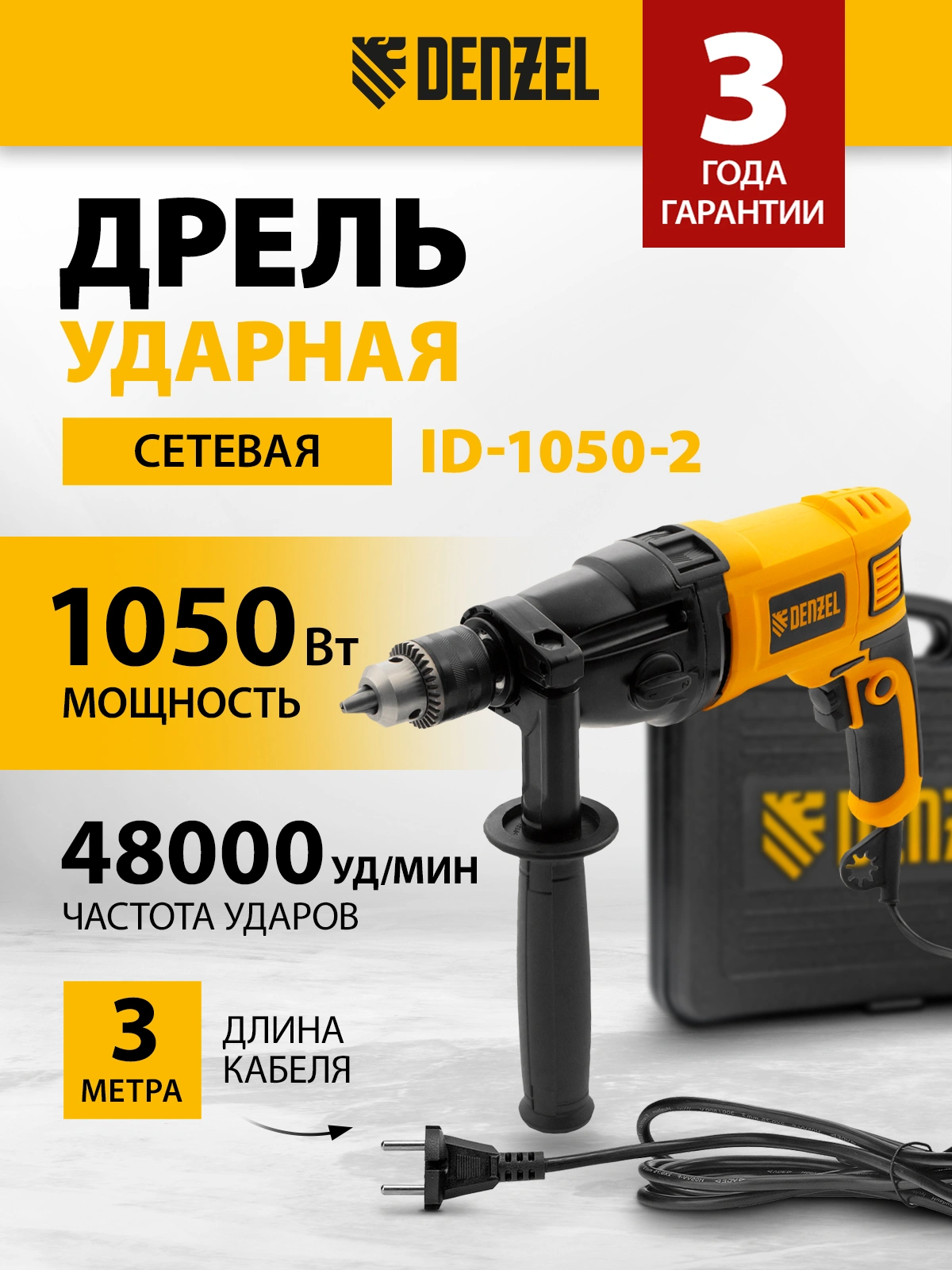Дрель ударная Denzel ID-1050-2 1050Вт ключевой реверс (кейс в комплекте) (26312)