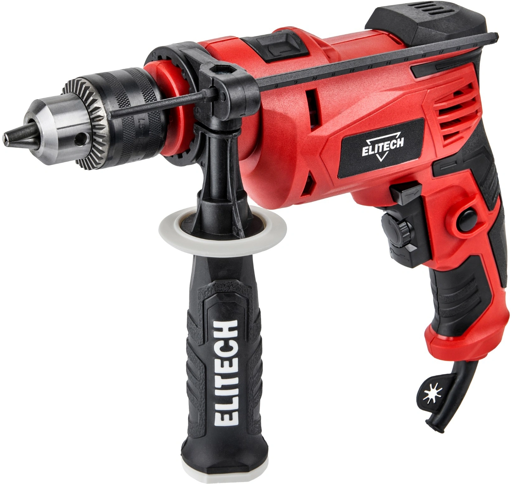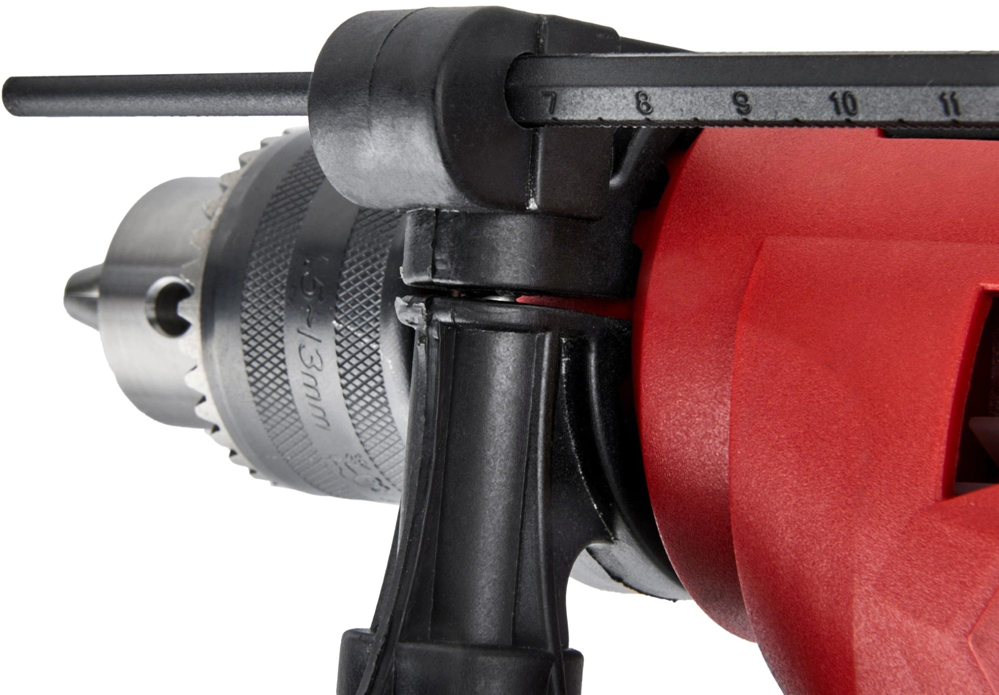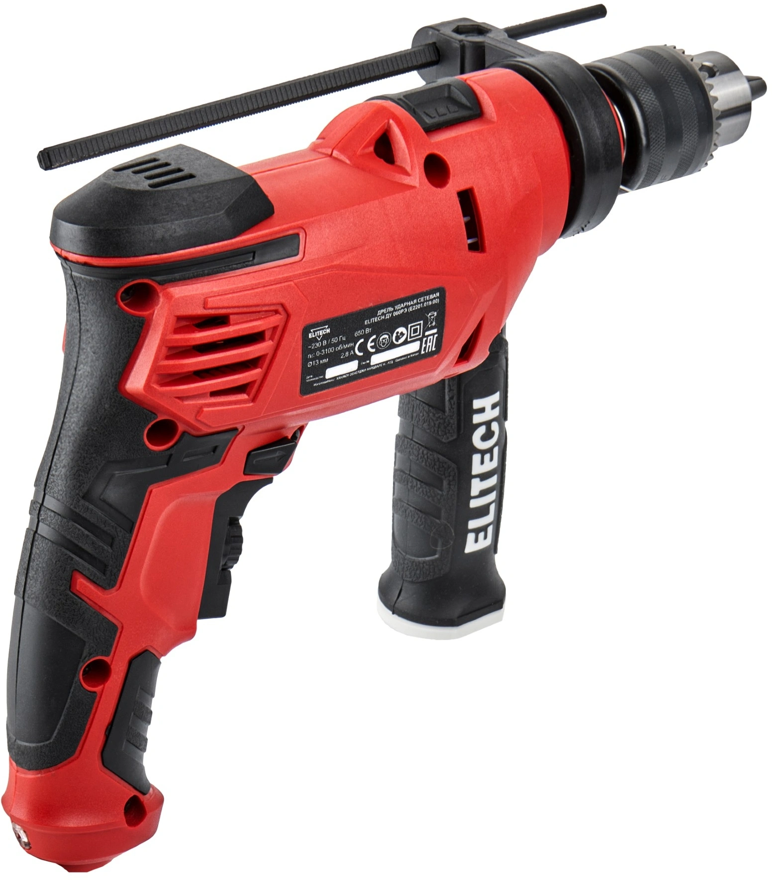 Дрель, боковая ручка, ограничитель глубины сверления, ключ патрона, руководство по эксплуатации.
