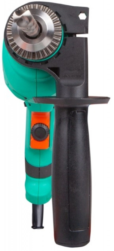 Дрель ударная, дополнительная рукоять; глубиномер, дополнительные угольные щетки (комплект 2 шт.) , ключ, инструкция по эксплуатации.
