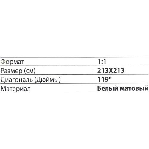 220 x 220 см Из-за наличия черной каймы 3.5 см по периметру экрана размеры изображения (приведенные в свойстве " Размеры изображения" ) меньше размеров экрана
