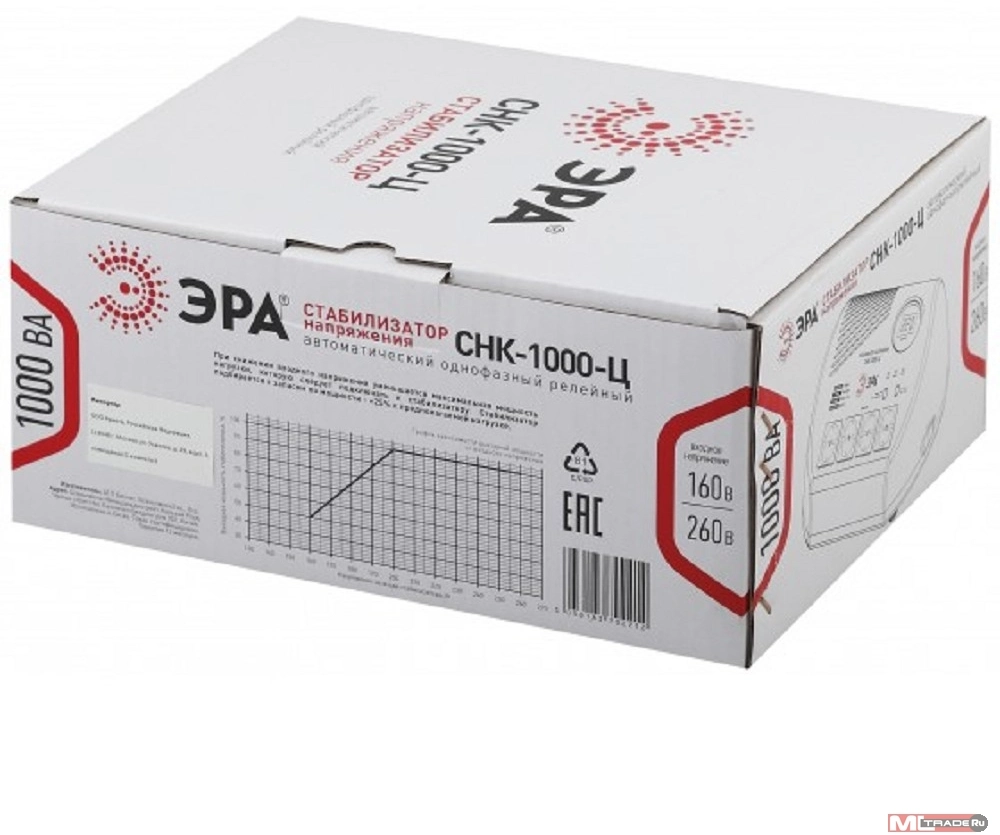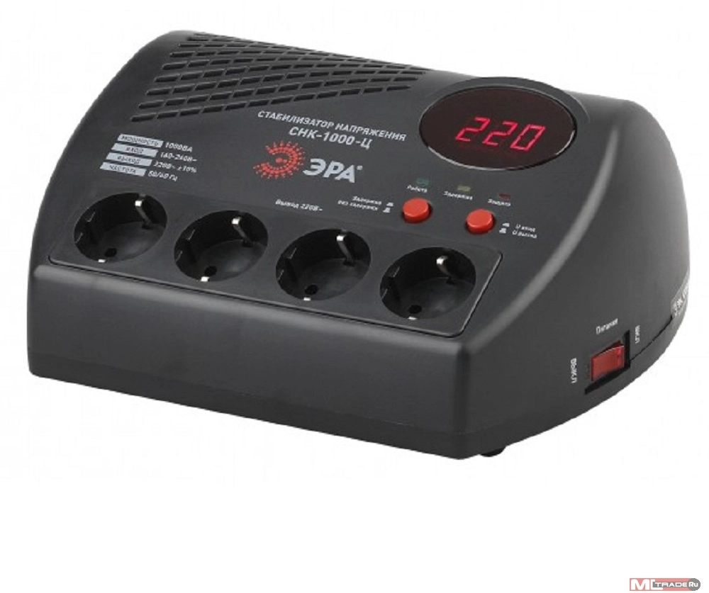 ЭРА Б0031072 СНК-1000-Ц Стабилизатор напр. компакт, ц.д., 160-260В/220В, 1000ВА