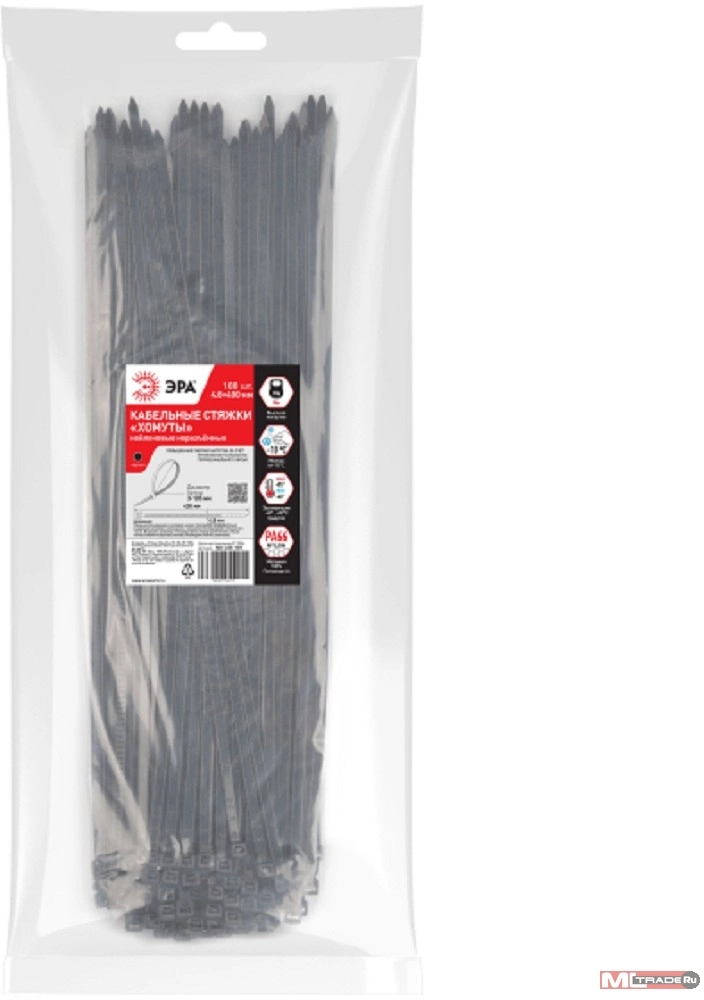 ЭРА Б0066003 Кабельная стяжка NO-225-187 (хомут) нейлоновая 4.8 х 400 мм чёрная (100 шт/ уп)