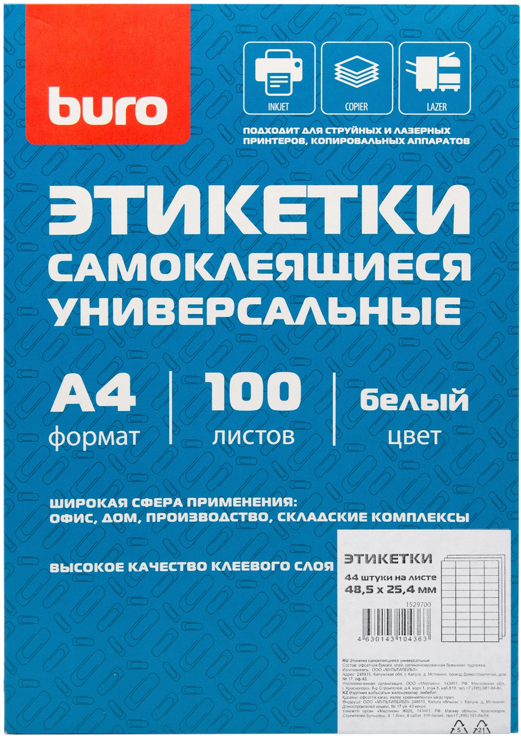 Этикетки Buro A4 48.5x25.4мм 44шт на листе/ 100л./ белый матовое самоклей. универсальная