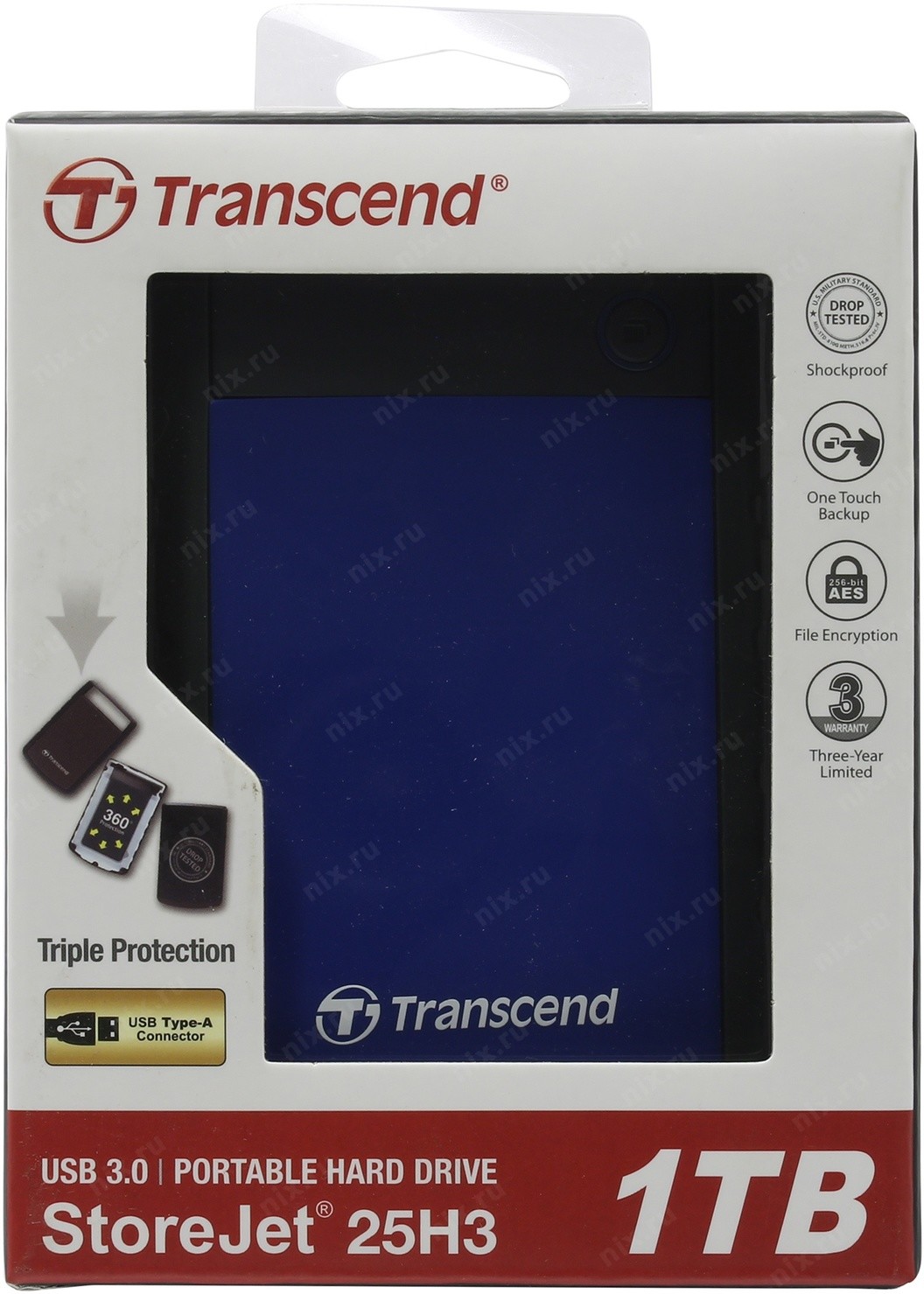 Жесткий диск Transcend USB3.0 1TB TS1TSJ25H3B StoreJet 25H3 (5400rpm) 2.5" синий