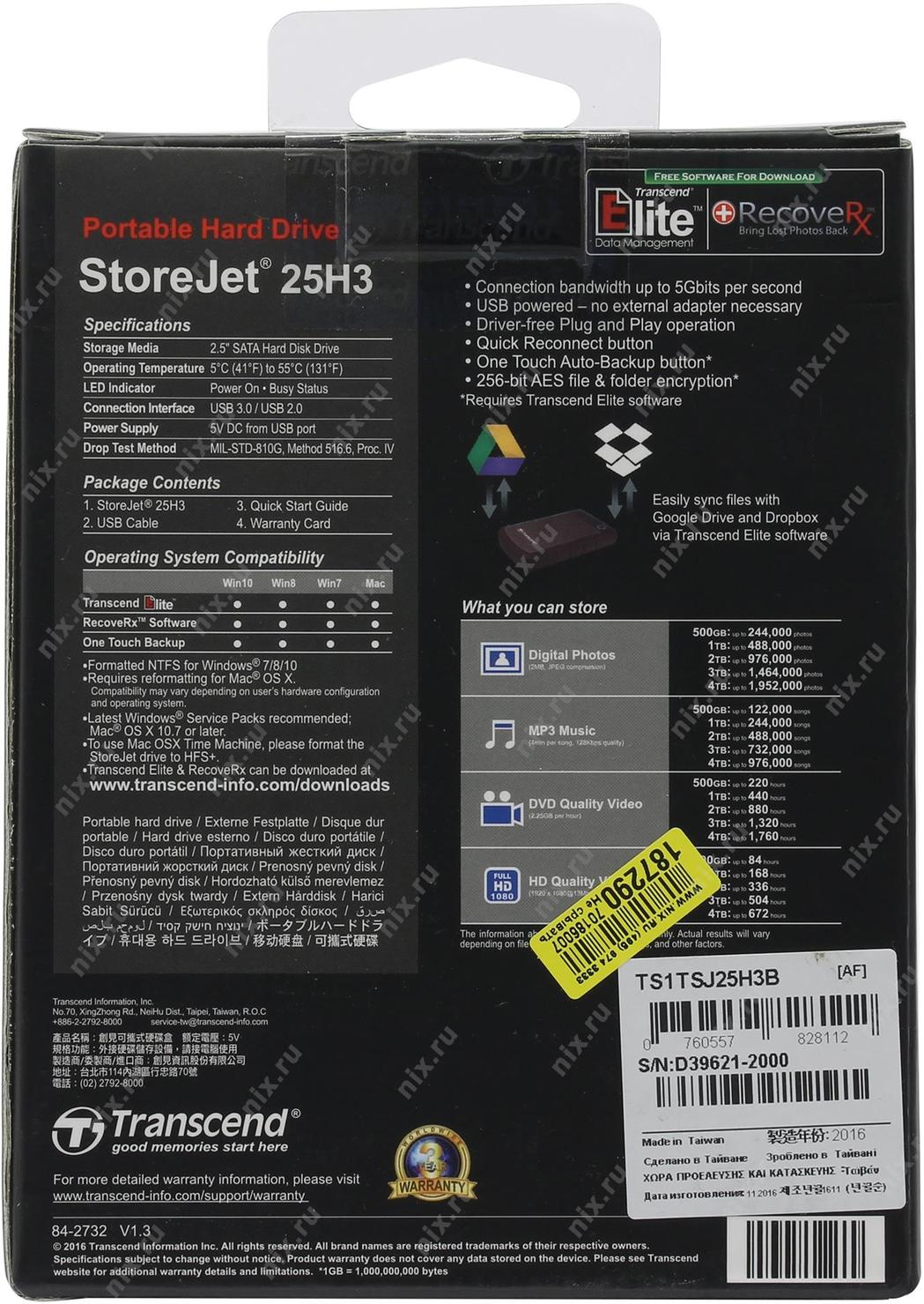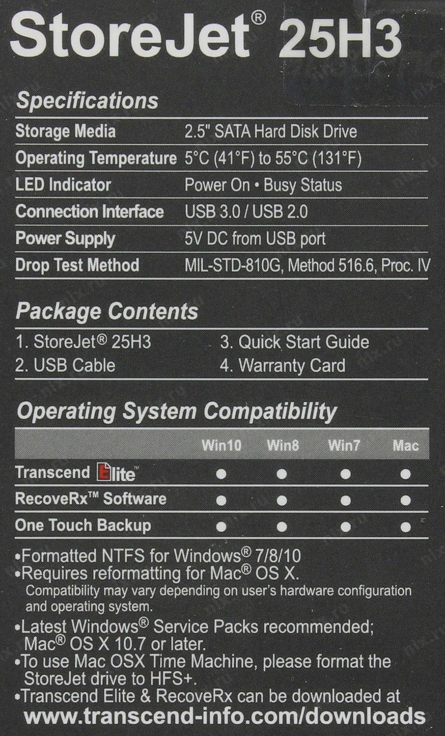 Накопитель на жестком магнитном диске Transcend 1TB StoreJet 2.5" H3