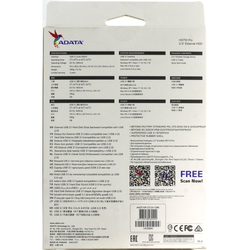 Носитель информации A-Data Portable HDD 2Tb HD710 AHD710P-2TU31-CBK (USB 3.1, 2.5", Black)