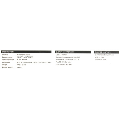 Защита от ударов. При перегрузке (например, при ударе или тряске) включается акселерометрическая система защиты данных G Shock Sensor Protection и мигает красный индикатор. При возобновлении нормальной работы накопителя его индикатор горит или мигает синим цветом.