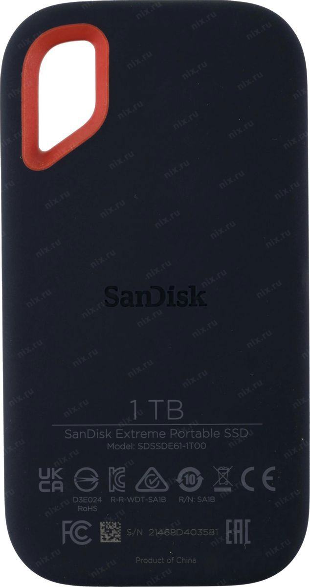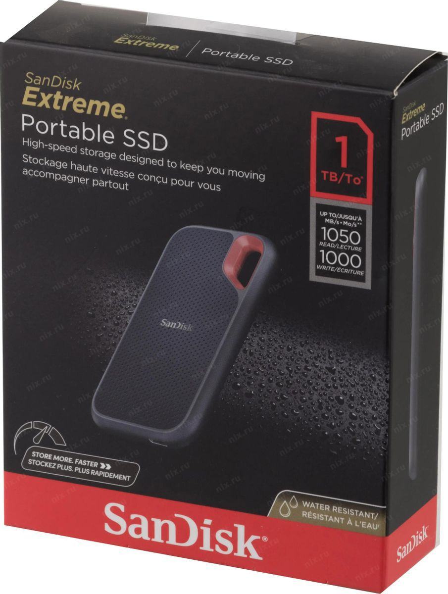Твердотельный накопитель SSD SanDisk Extreme 1TB Portable SSD - up to 1050MB/s Read and 1000MB/s Write Speeds, USB 3.2 Gen 2, 2-meter drop protection and IP55 resistance (SDSSDE61-1T00-G25)