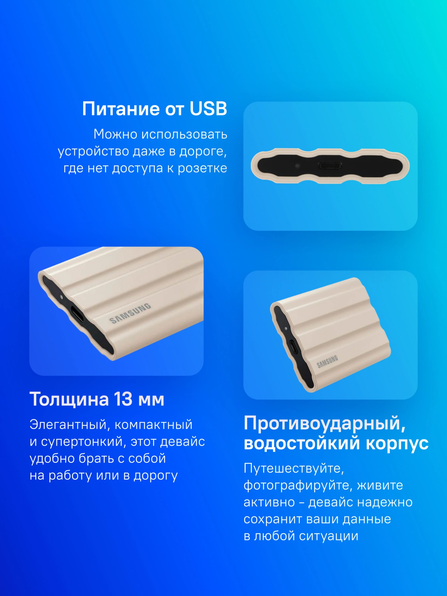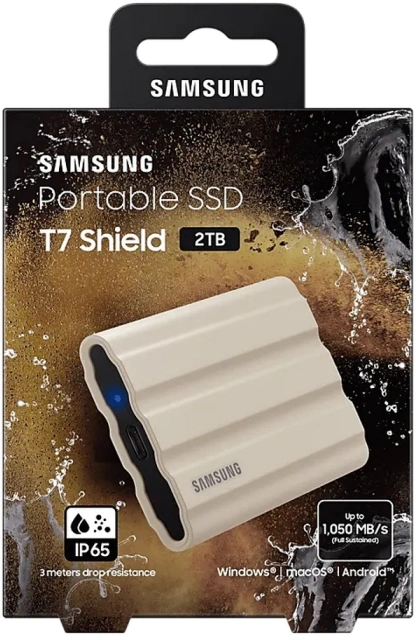 Твердотельный накопитель SSD Samsung T7 Shield MU-PE2T0K/WW 2TB USB 3.2 Gen2 Type-C, 1050/1000