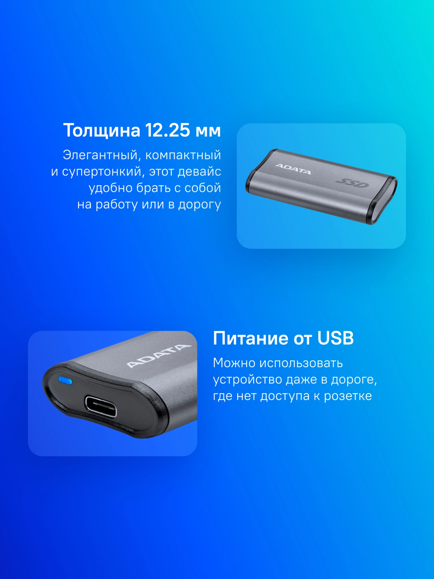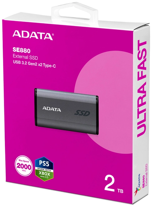 Твердотельный накопитель SSD ADATA Elite SE880 AELI-SE880-2TCGY 2TB Titanium Grey External USB 3.2 Gen2x2 Type C, 2000/2000 RTL
