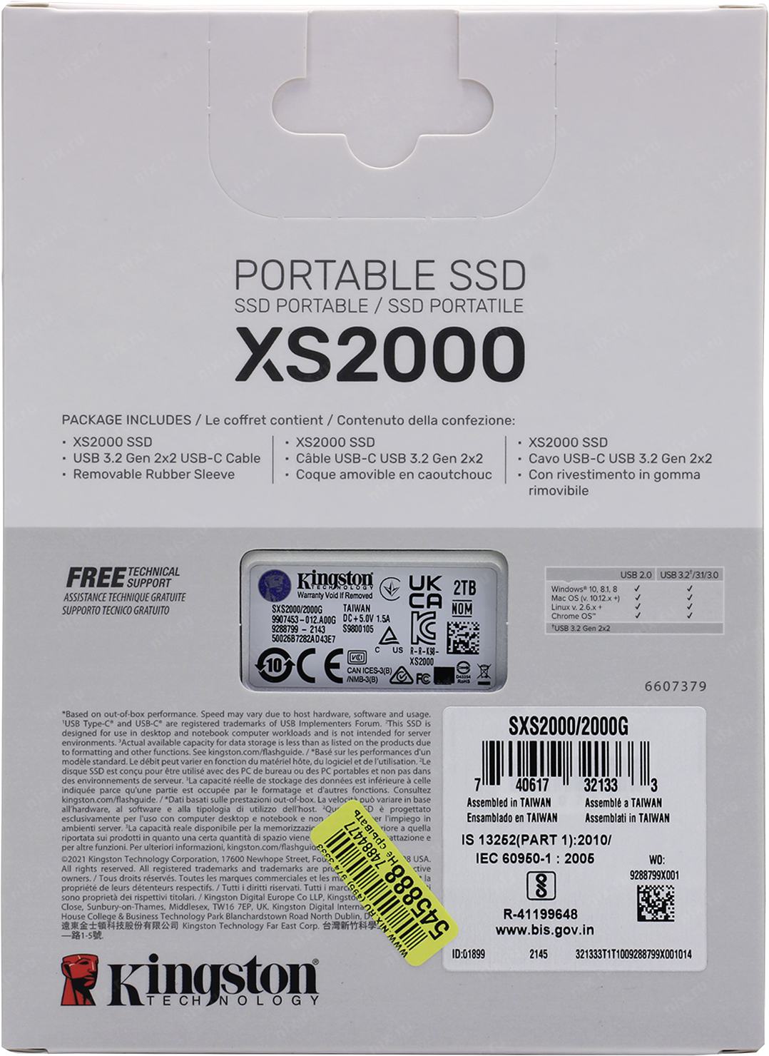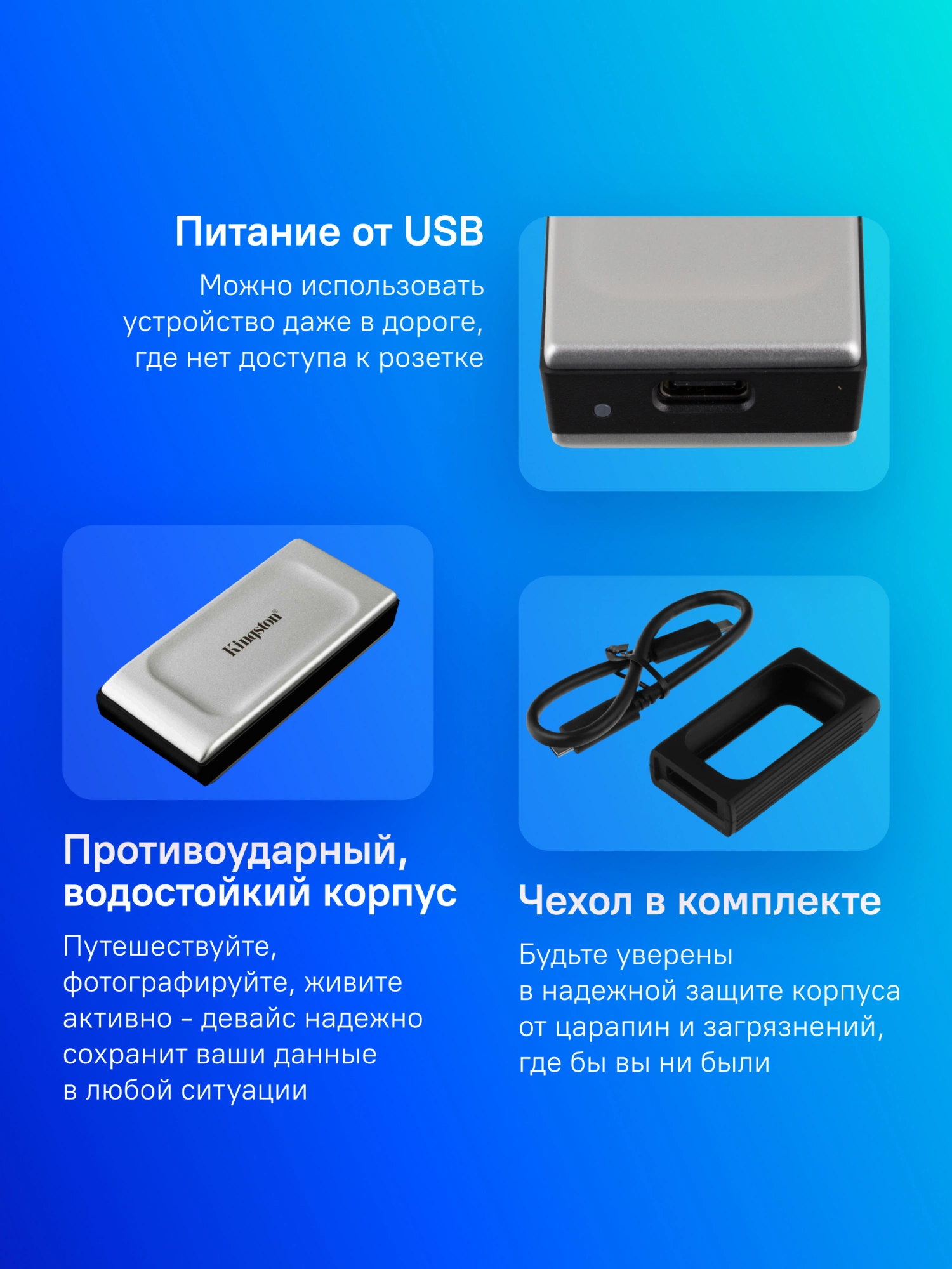 Накопитель SSD Kingston USB3.2 2TB SXS2000/2000G XS2000 серый