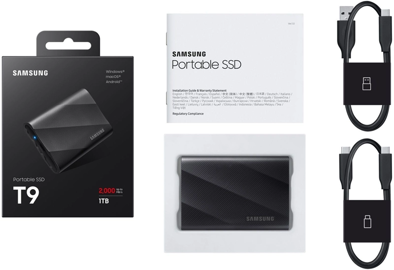 Твердотельный накопитель SSD Samsung T9 External 1Tb BLACK USB 3.2 Type-C (MU-PG1T0B/WW) 1year