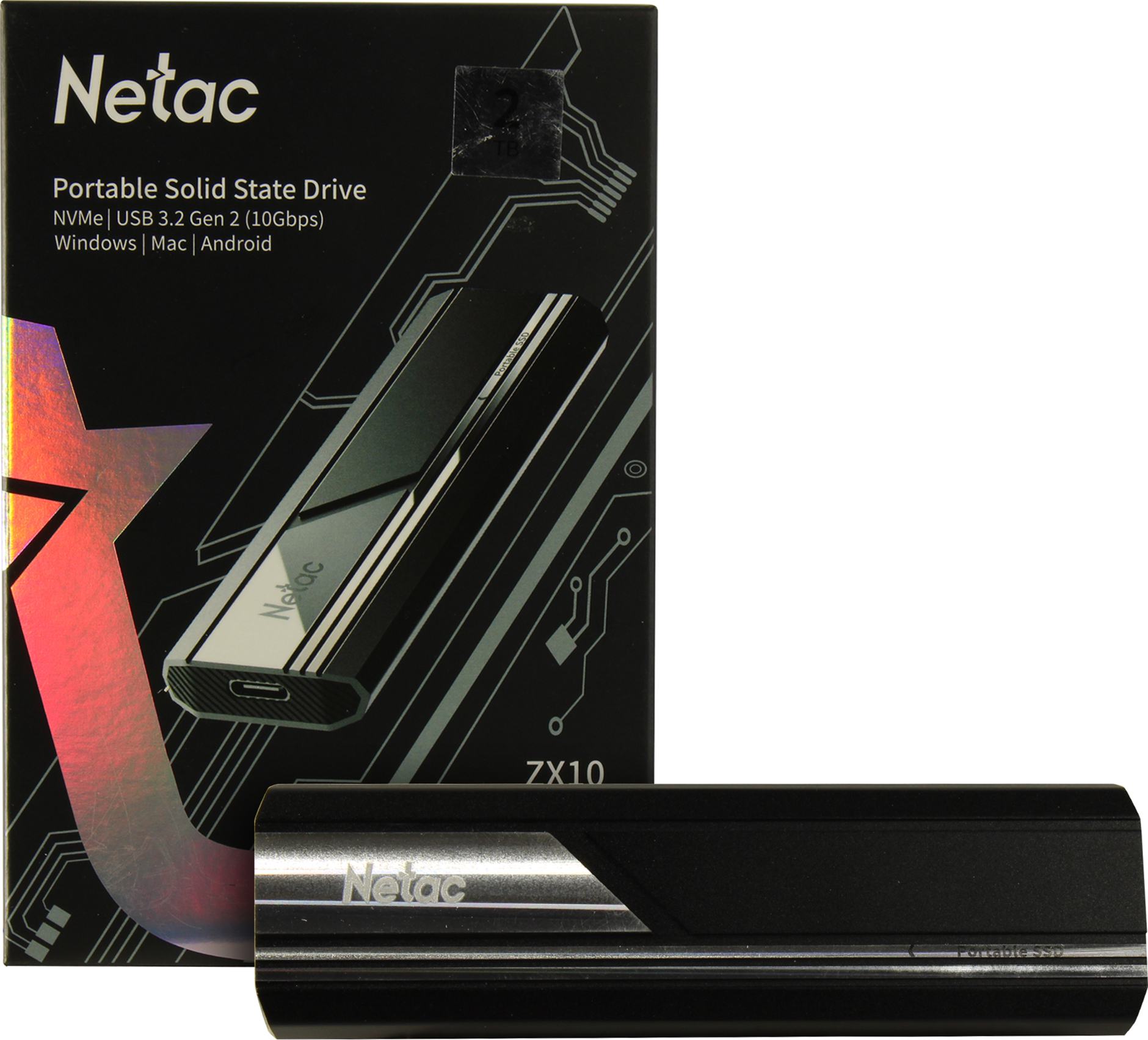 SSD накопитель Netac ZX10 2TB USB 3.2 Gen 2 Type-C External SSD, R/W up to 1050/1050MB/s, with USB C to A cable and 10Gbps USB C to C cable <NT01ZX10-002T-32BK>