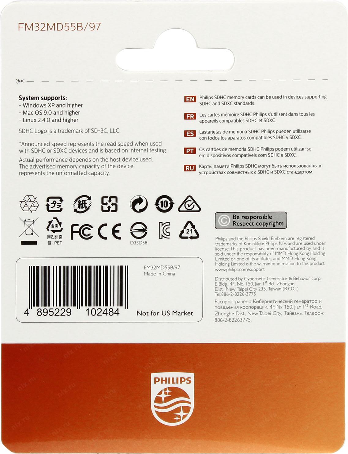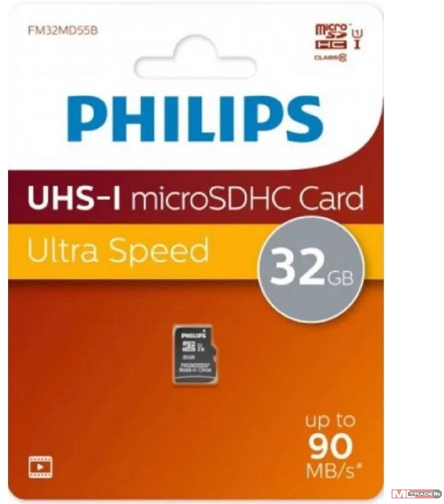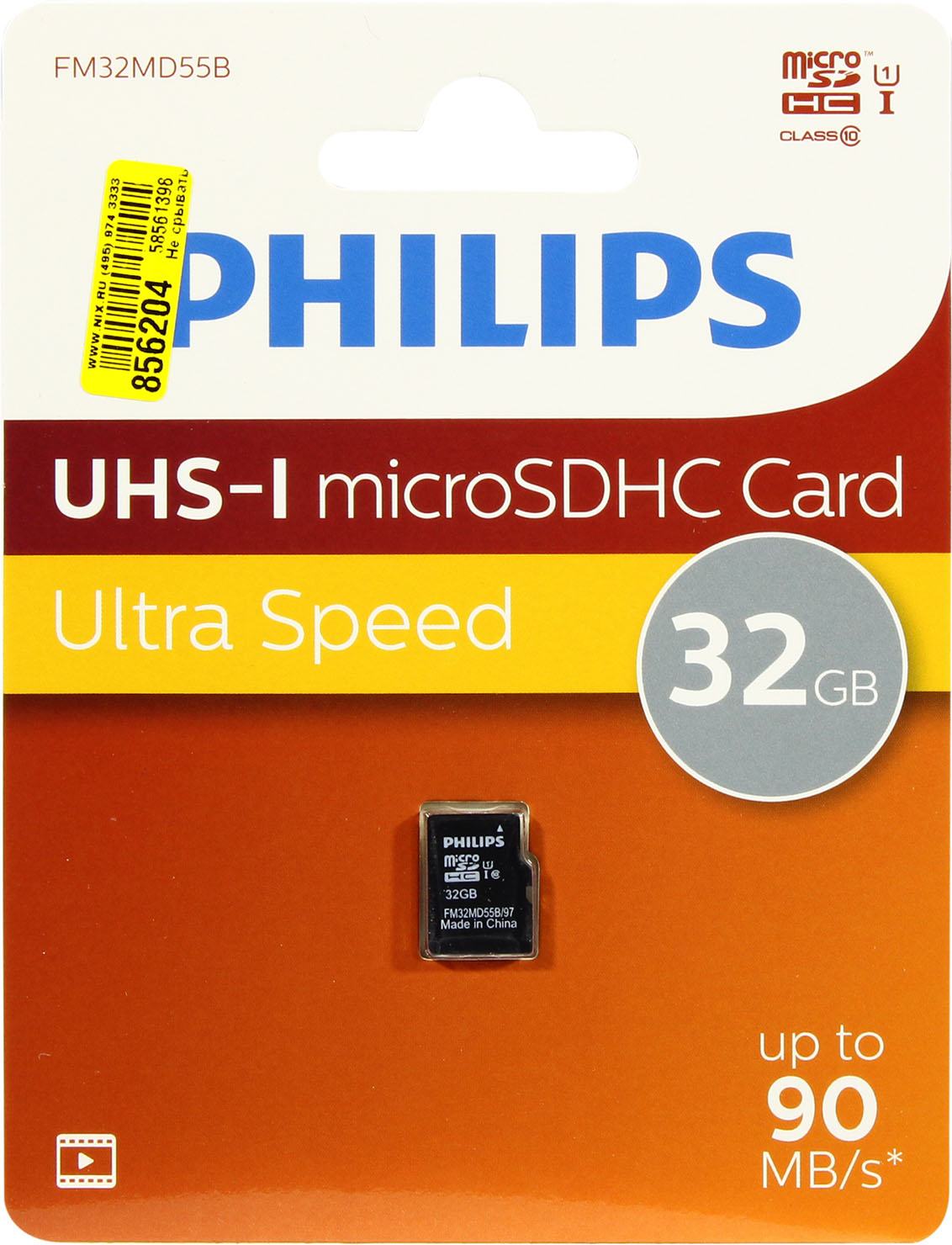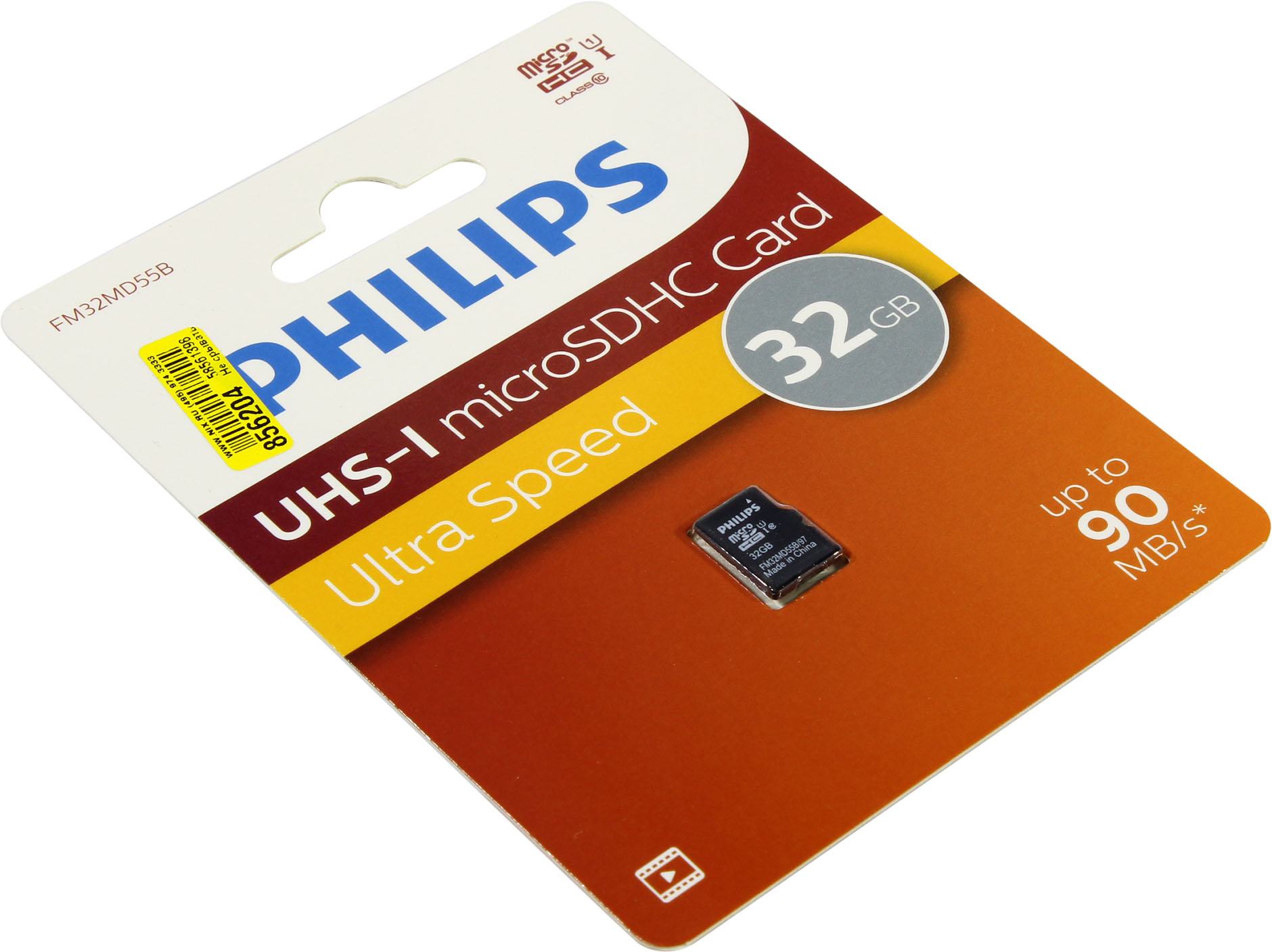 Карта памяти Micro SecureDigital 32GB Philips High Speed microSDHC Class 10 90MB/s (FM32MD55B/97)