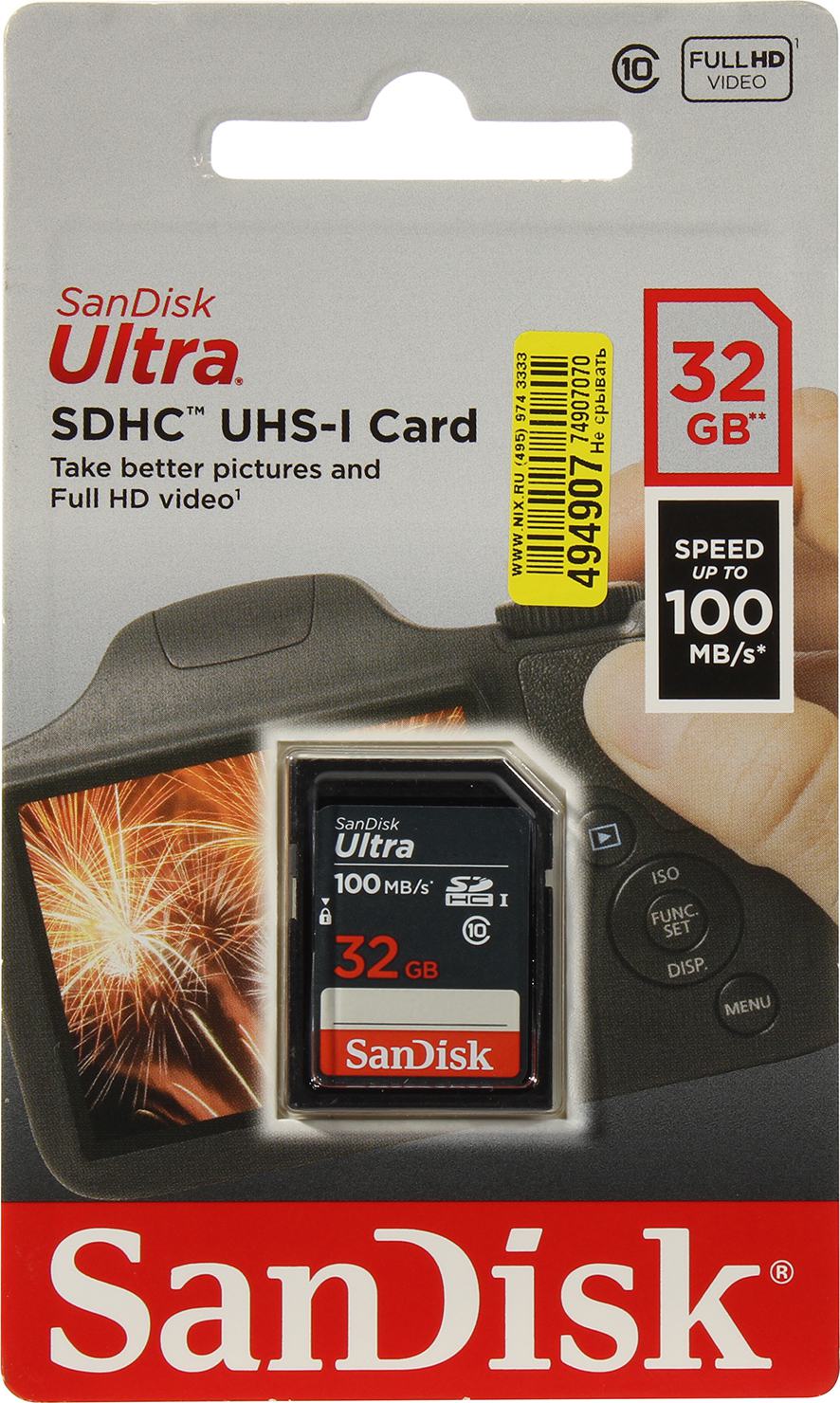 Карта Памяти SanDisk Ultra 32GB SDHC Memory Card 100MB/s