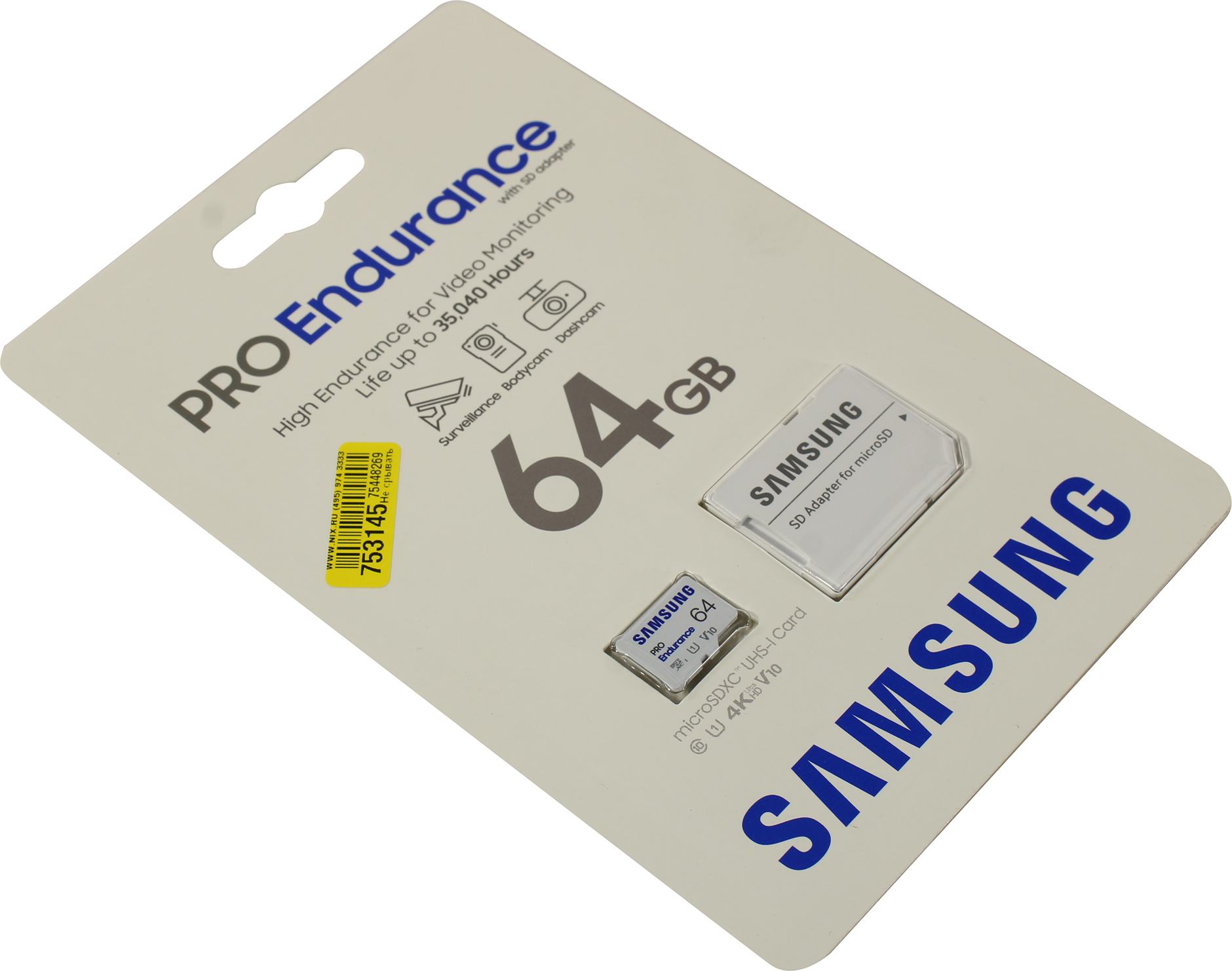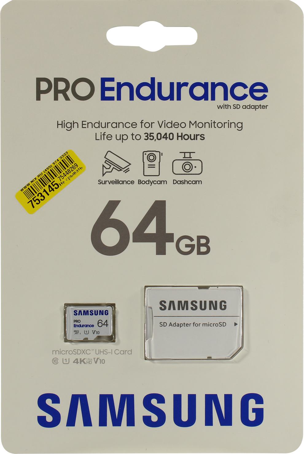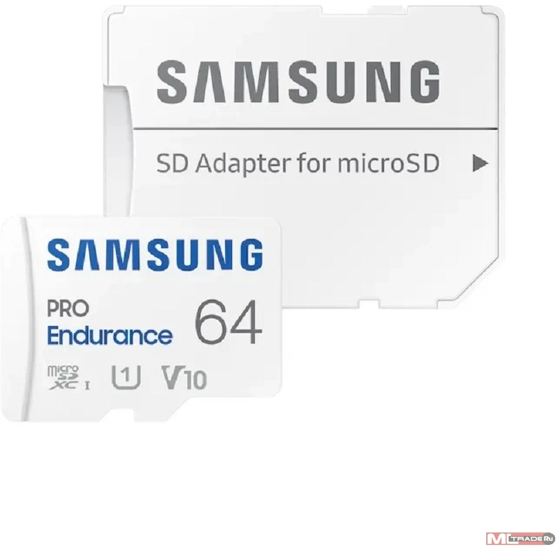 Карта памяти Micro SecureDigital 64GB Samsung Class 10 Pro Endurance UHS-I (R/W 100/30 MB/s) + SD адаптер (для видеорегистратора) [MB-MJ64KA/APC] | НИКС Екатеринбург