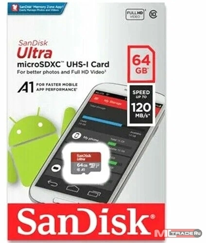 Карта Памяти SanDisk 128GB Ultra® microSDXC 120MB/s A1 Class 10 UHS-I