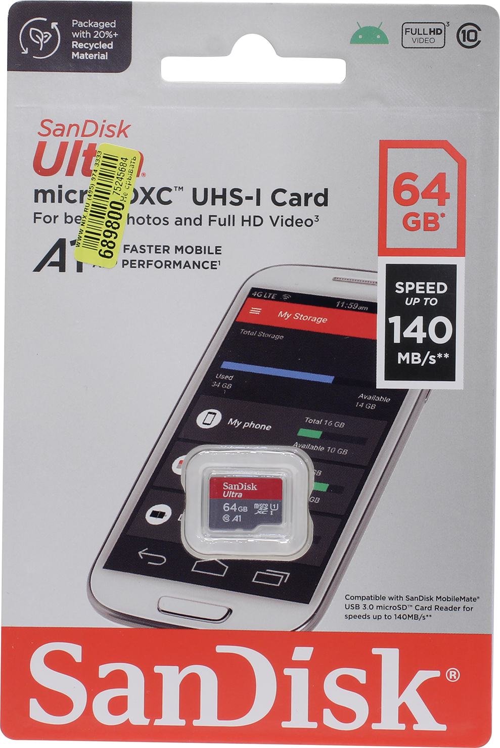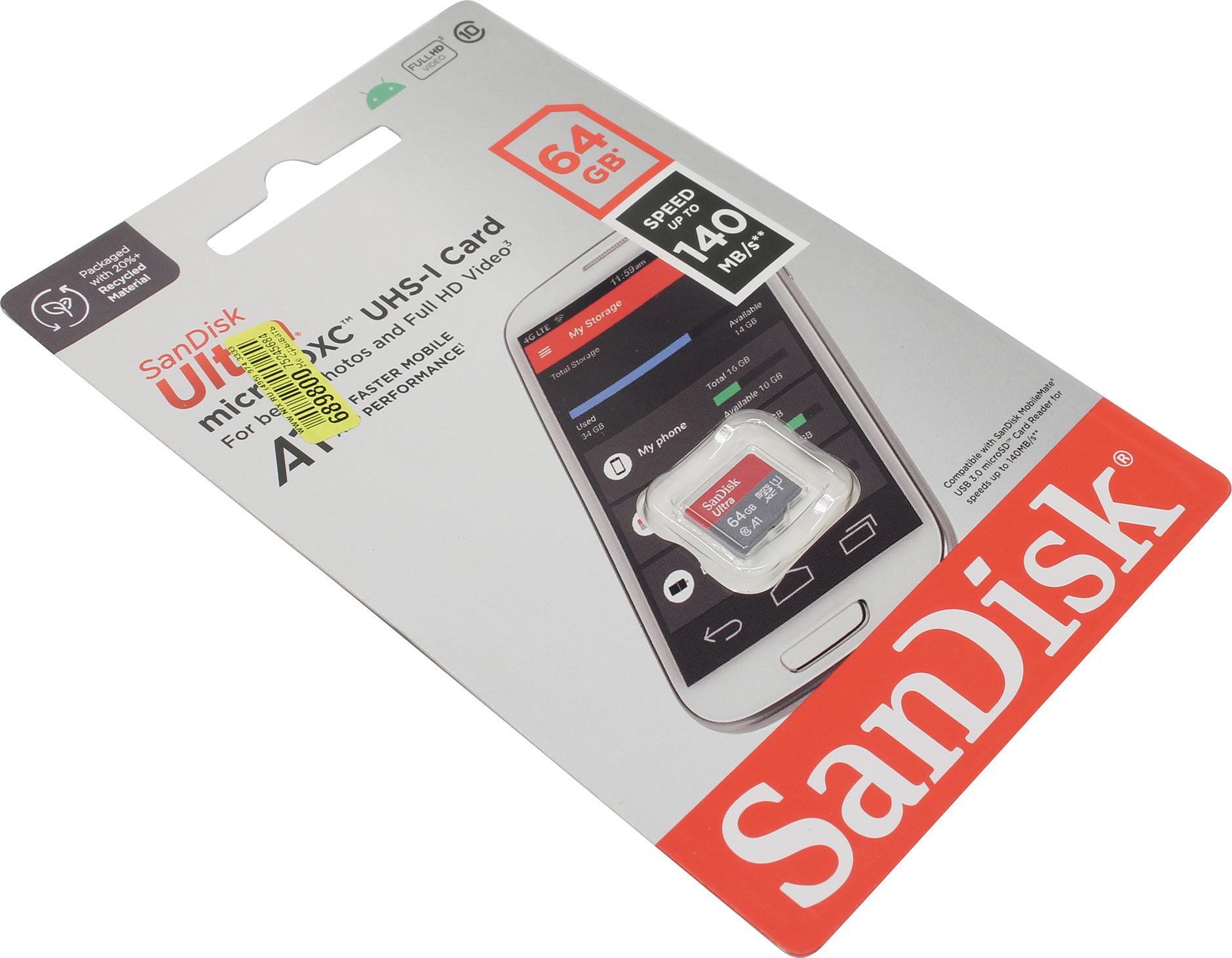 Карта памяти SanDisk Ultra UHS I 64GB MicroSD Card 140MB/s R, for Smartphones (SDSQUAB-064G-GN6MN)