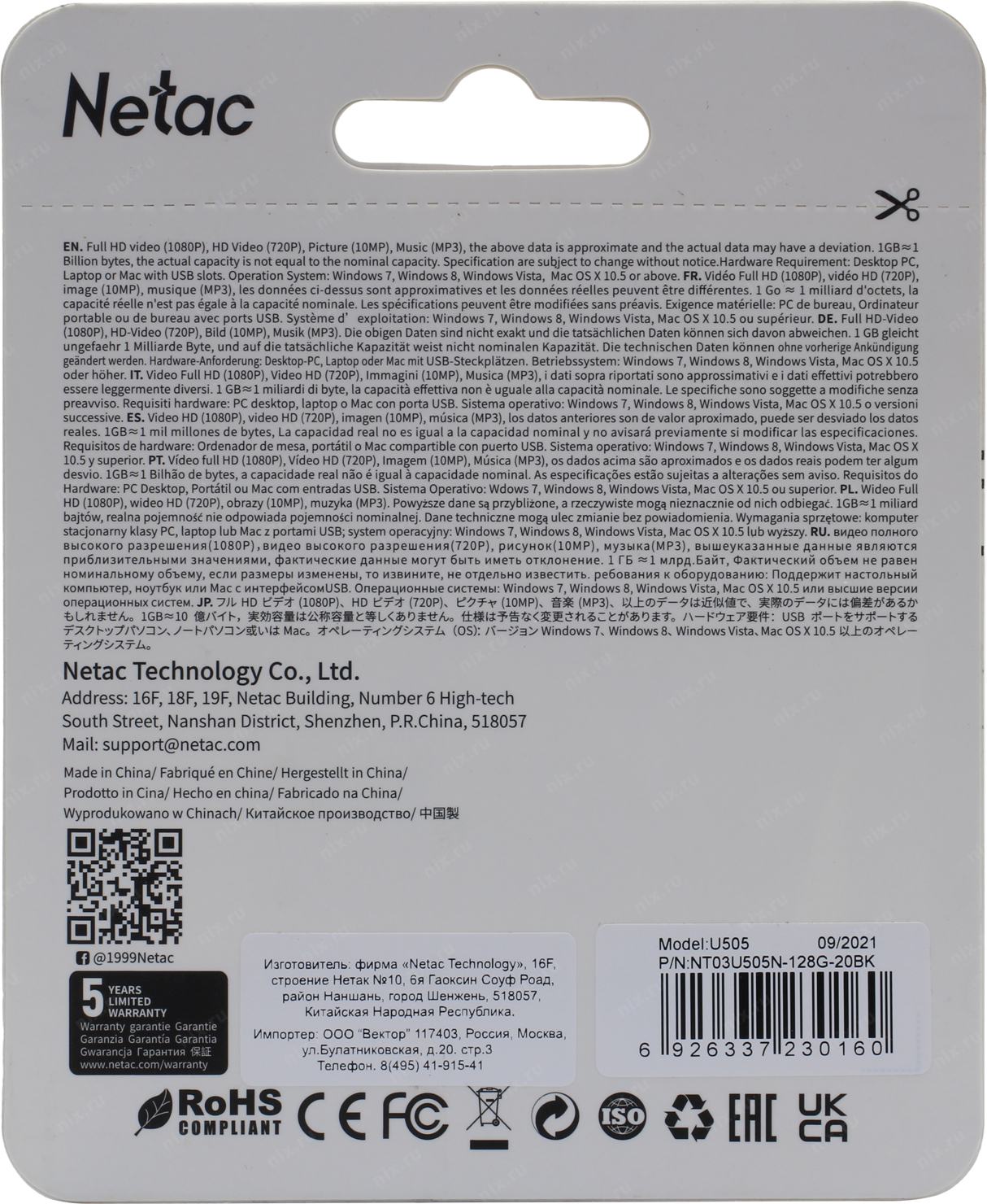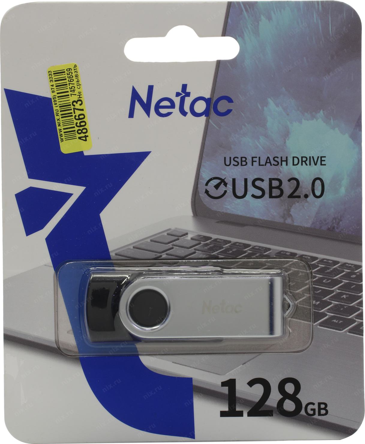 Носитель информации Netac USB Drive 128GB U505 USB2.0, ABS+Metal housing [NT03U505N-128G-20BK]