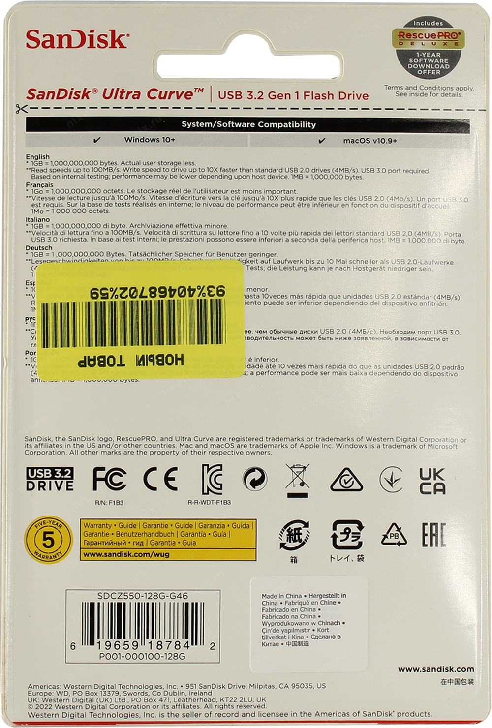 Флеш Диск Sandisk 128GB Ultra Curve SDCZ550-128G-G46 USB3.2 черный